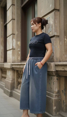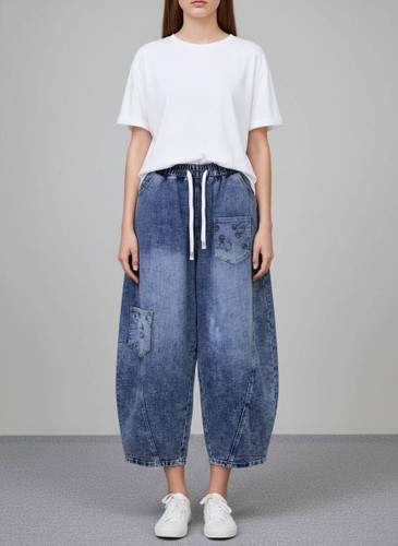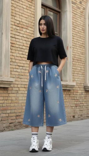 شلوار جین نیم بگ وارداتی/ تکرنگ (۲)