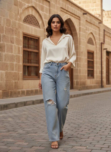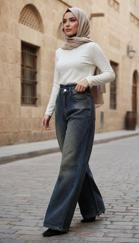 شلوار جین تکرنگ نگین دار ۲۸۴۶