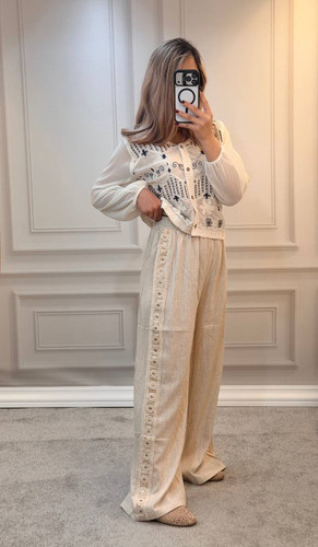 ست شومیز و شلوار خامه دوزی وارداتی (سه رنگ)