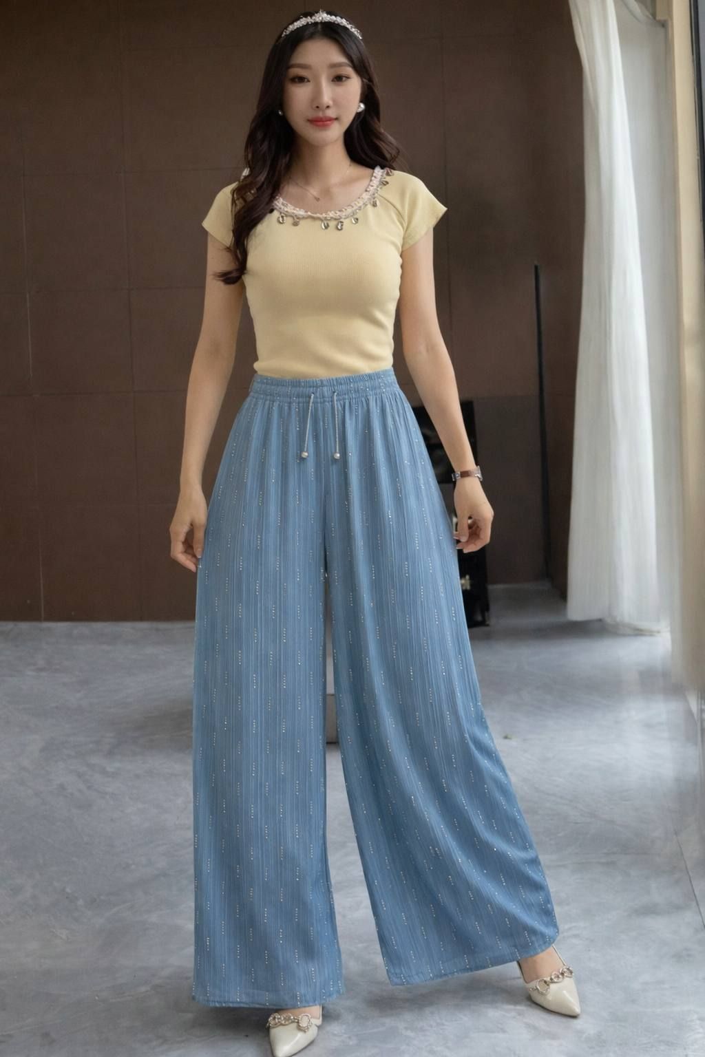 ناموجودشلوار واید لگ وارداتی تکرنگ ۲۸۴۵