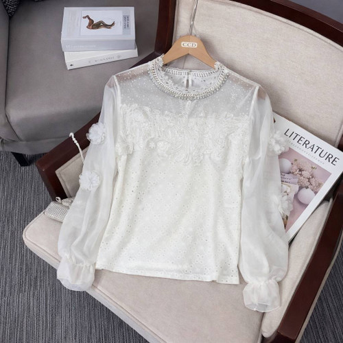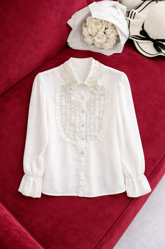 شومیز مجلسی سفید وارداتی گلدوزی ۲۹۴۲
