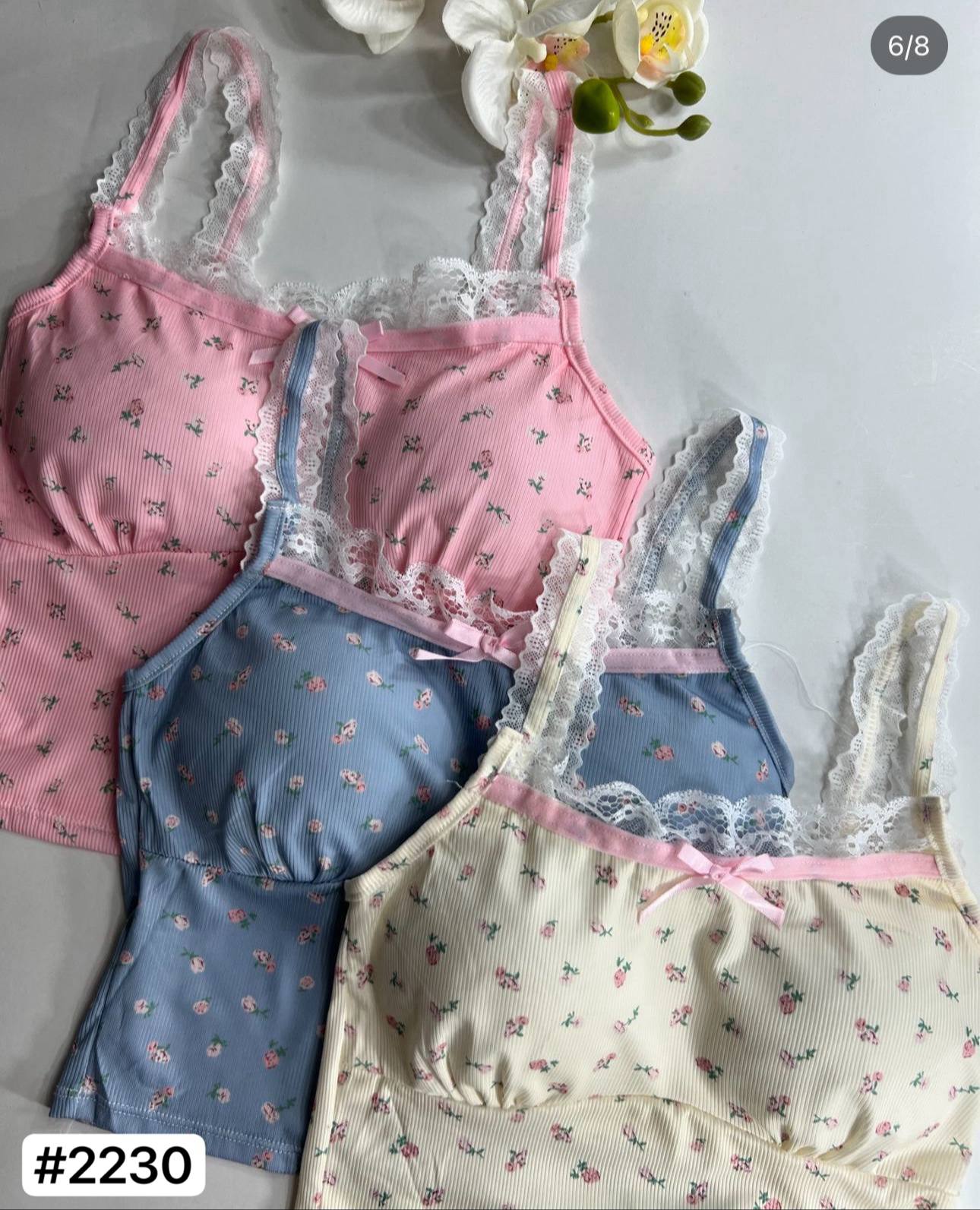 کراپ تاپ گلدار زنانه با بند ظریف و یقه گیپور – کیفیت عالی و تنخور جذب