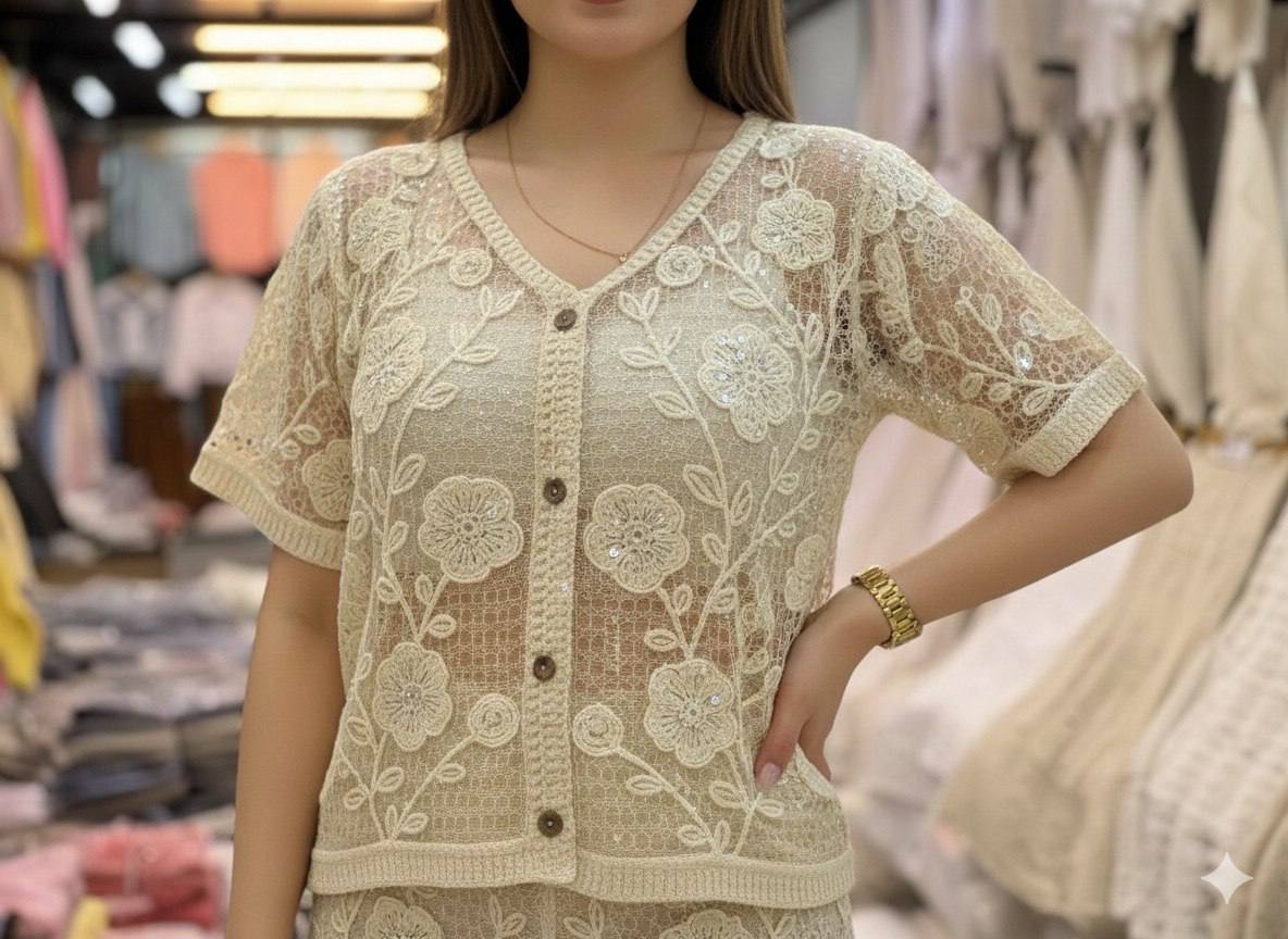 شومیز کراپ قلاب بافی وارداتی در دورنگ ۳۱۰۹