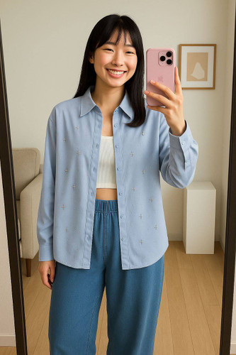 ناموجودشومیز قواره دار آستین چیندار بابونه