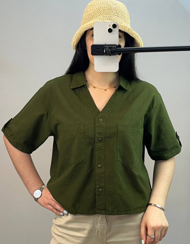 شومیز کراپی وارداتی طرح جیب دار در سه رنگ ۲۹۵۷