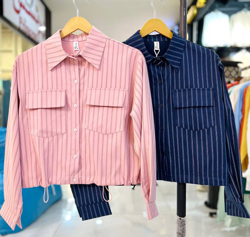 شومیز کوتاه راه راه وارداتی (۲ رنگ)