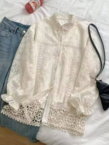شومیز سفید گلدوزی شده وارداتی ۲۹۴۳