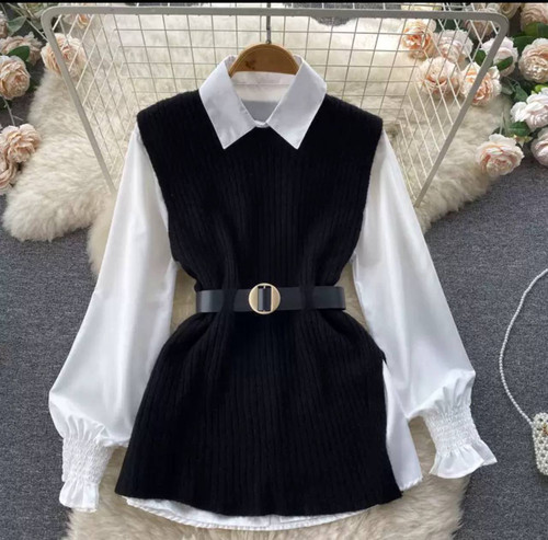 ست شومیز و وست بافت همراه با کمربند/ چهار رنگ دارد (۲)