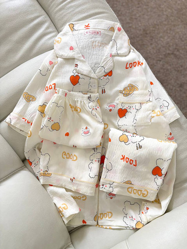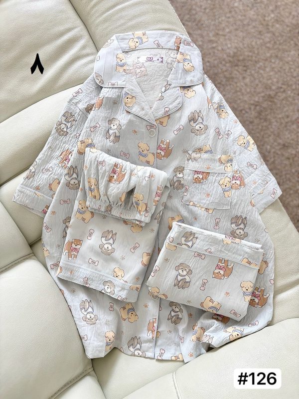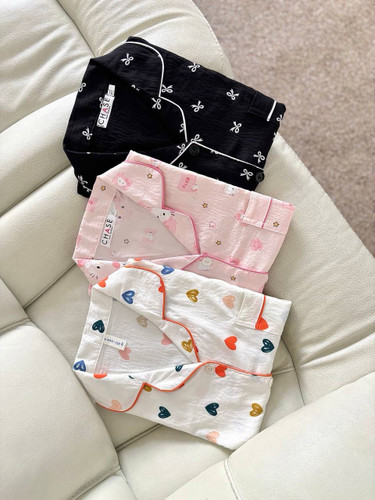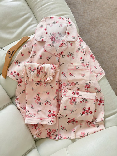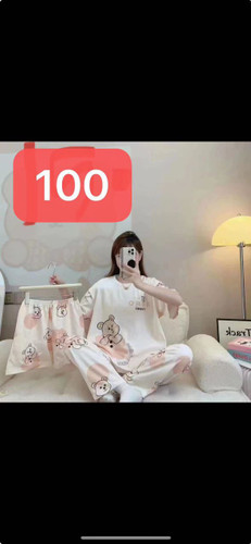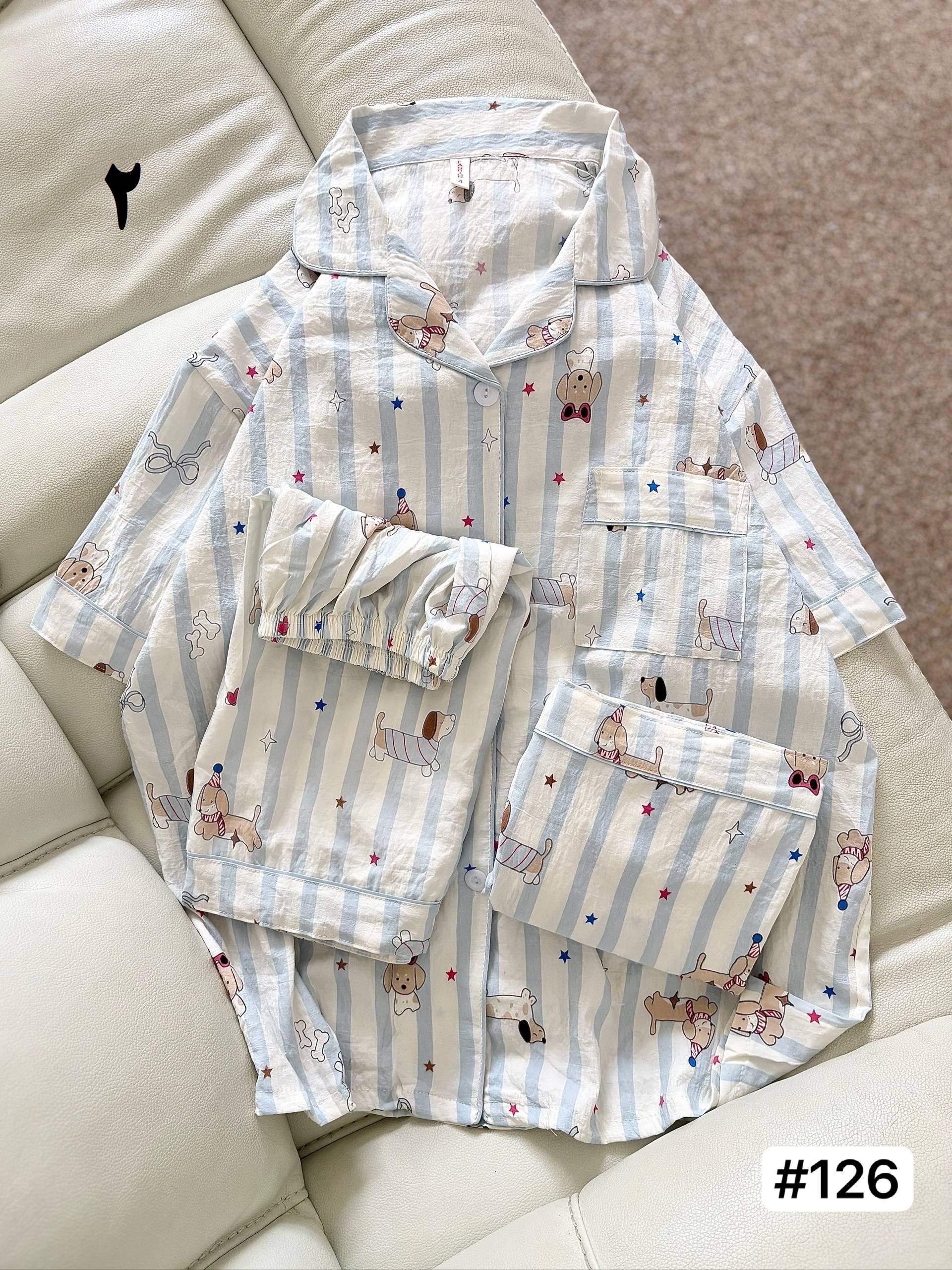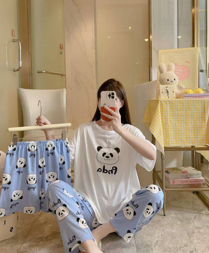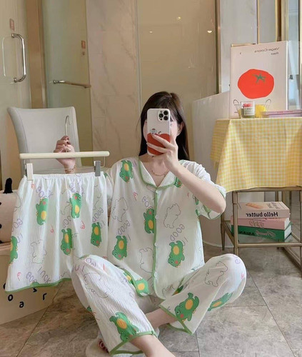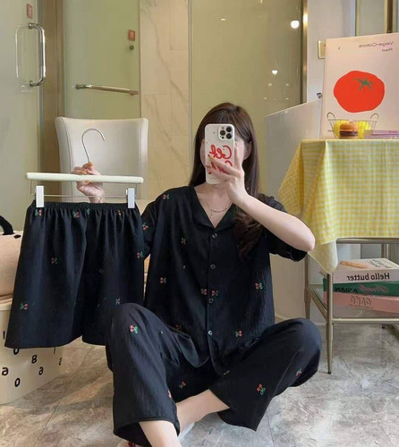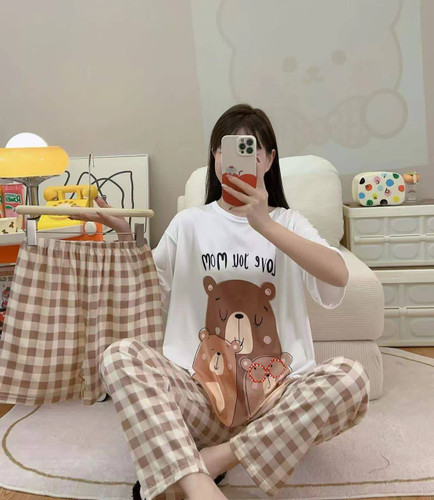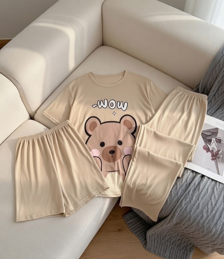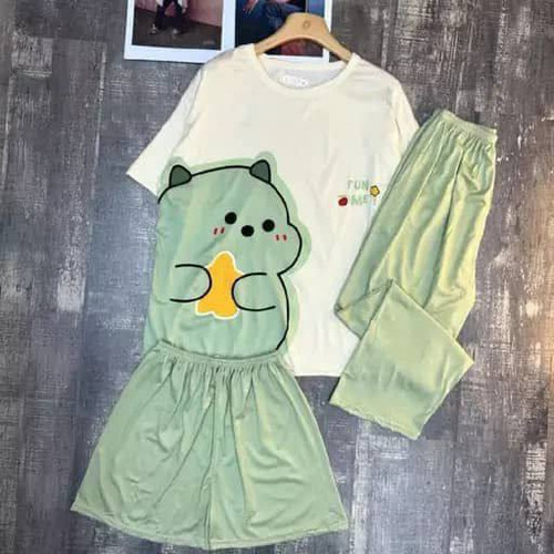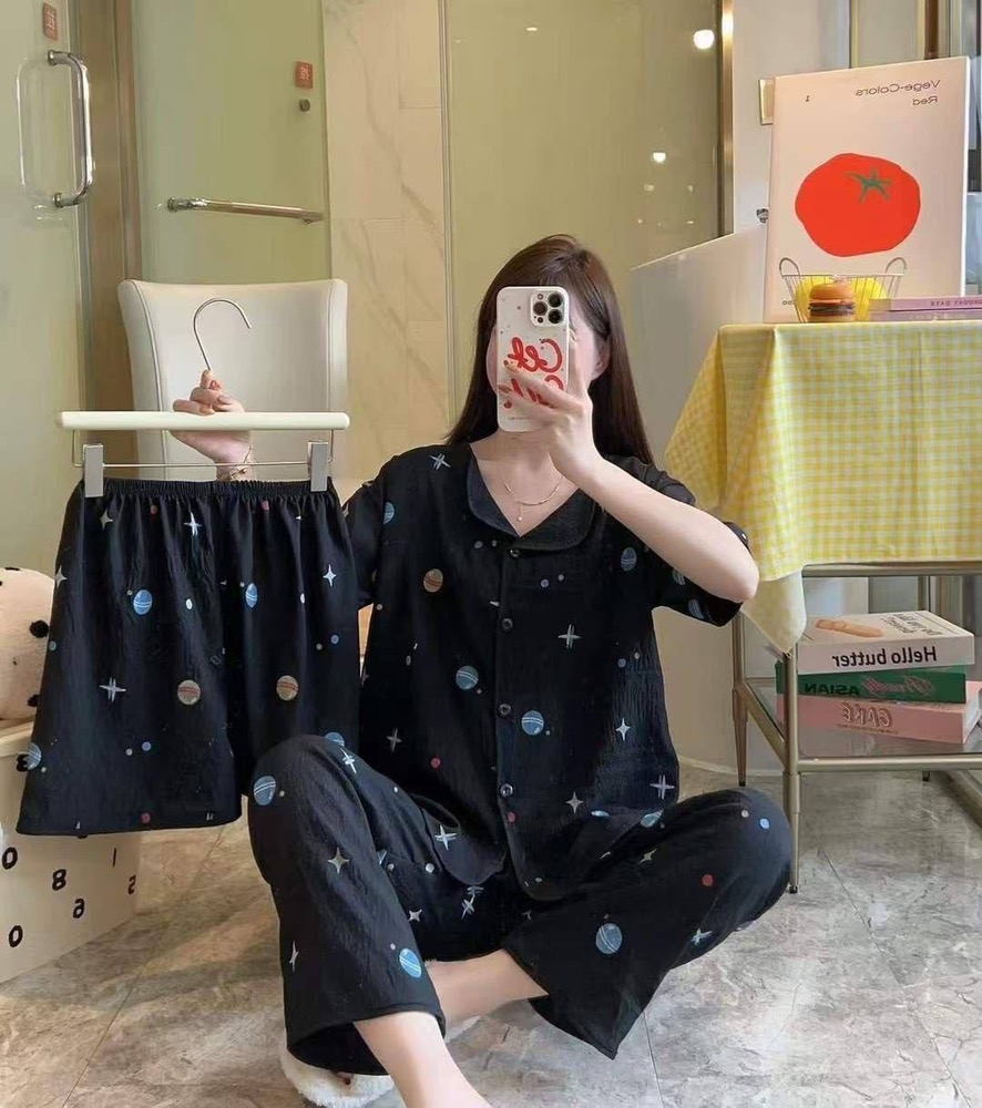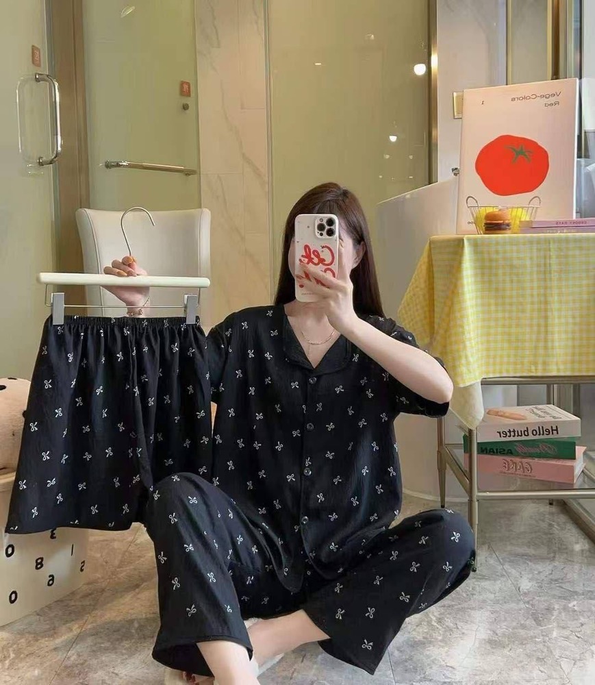 ست خونگی سه تیکه بلوز شلوار و شورتک زنانه و دخترانه (نخ موسلین)