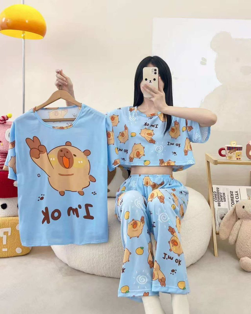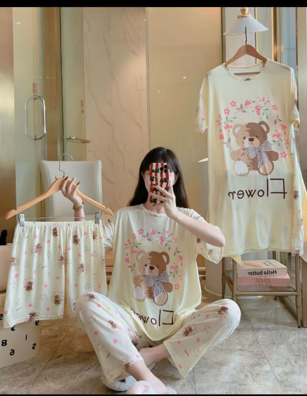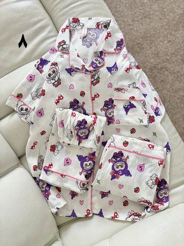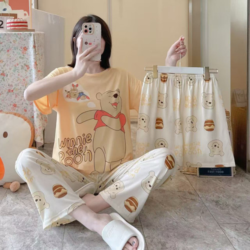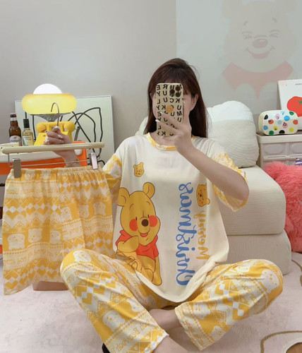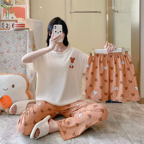 ست سه تیکه خونگی بلوز شلوار و شورتک وارداتی زنانه و دخترانه