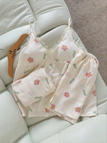 ست خونگی سه تیکه وارداتی زنانه و دخترانه (جنس نخ موسلین)