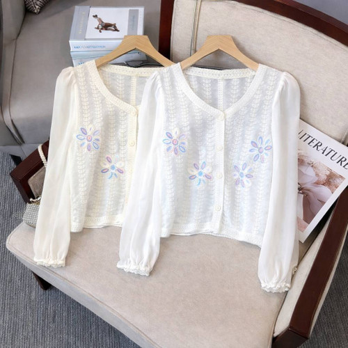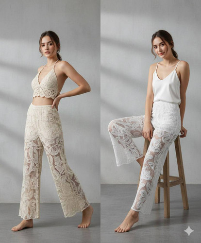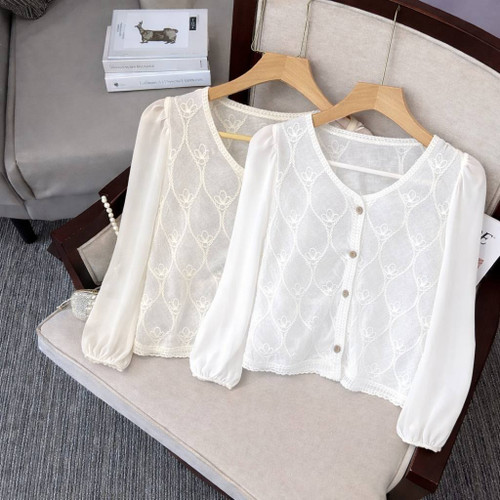 شومیز کراپ قلاب بافی دخترونه (رنگ سفید و شیری)