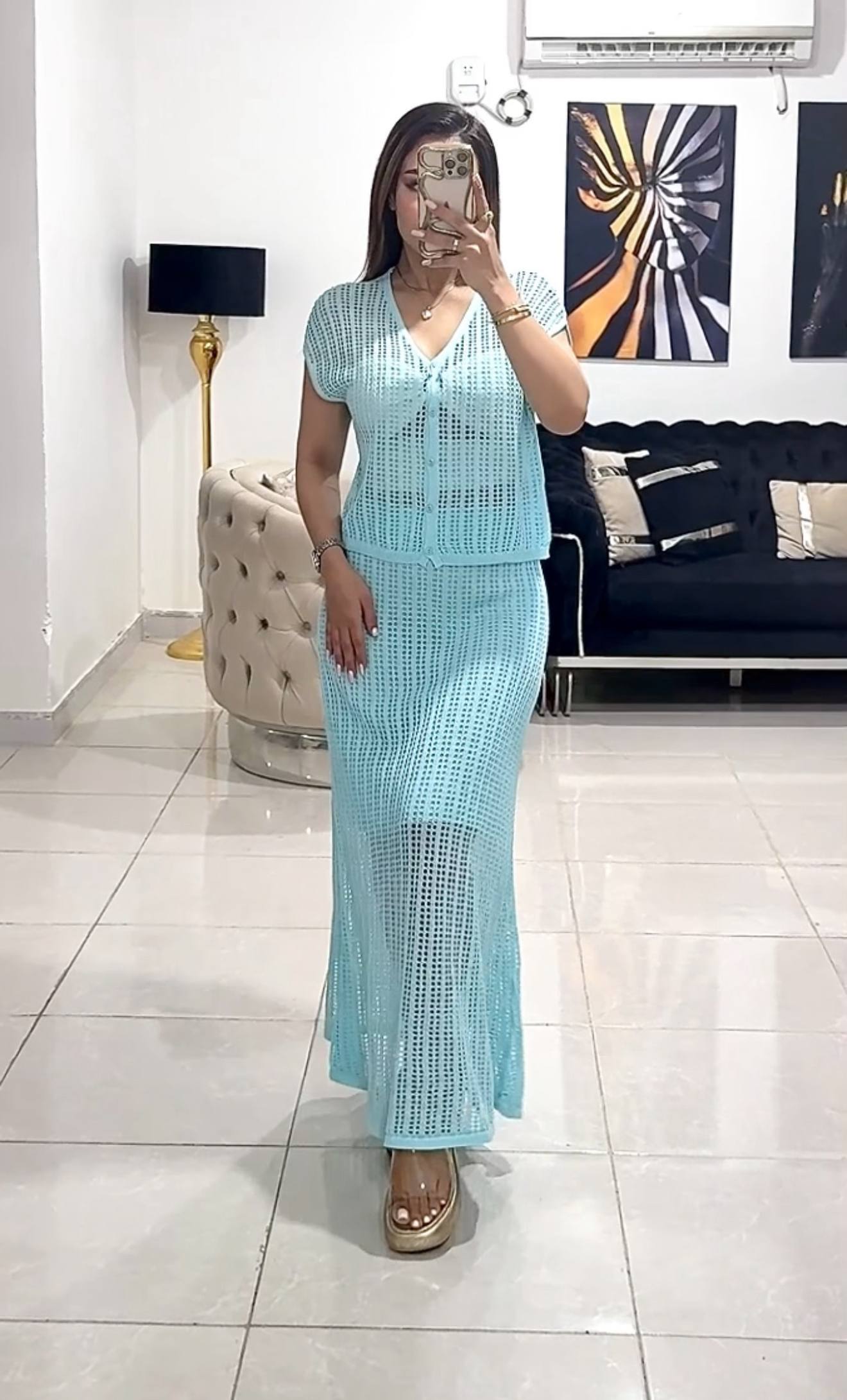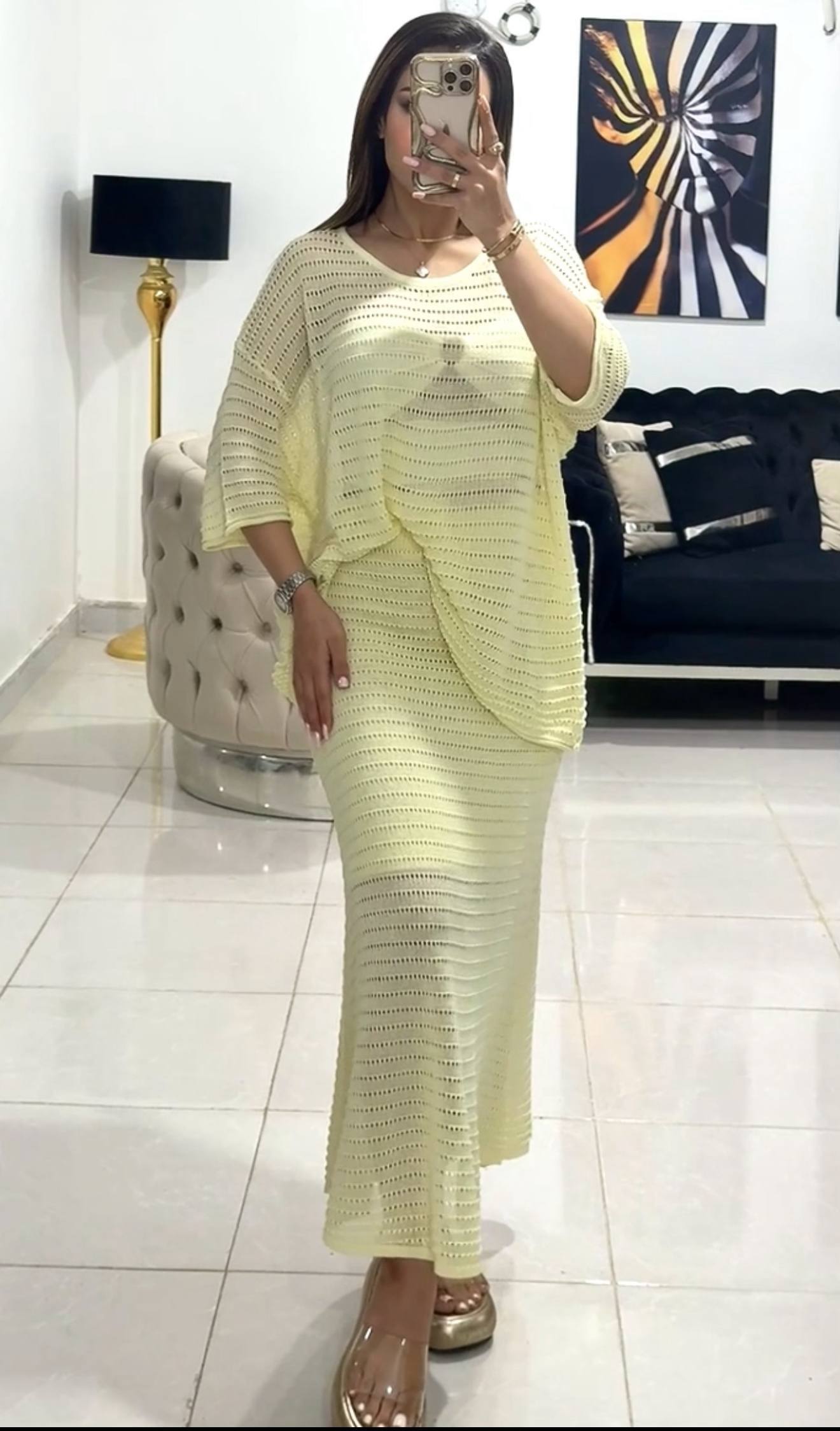 ناموجودست دو تیکه قلاب بافی و سارافون وارداتی در دو رنگ