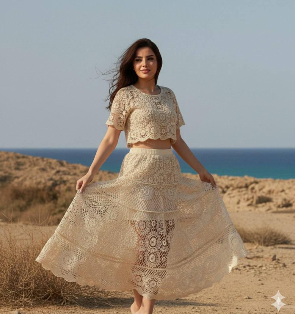 ست بلوز و دامن قلاب بافی در سه رنگ (۲)