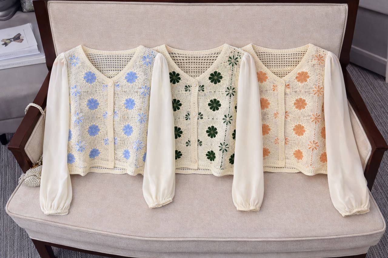 ناموجودبلوز پاییزه وارداتی دز پنج رنگ ترکیبی از بافت و قلاب بافی (۲)