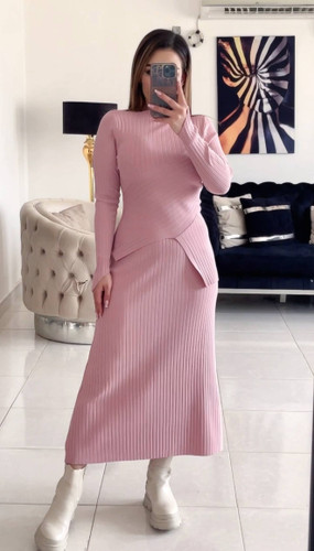 ست بلوز و دامن شیک ریز بافت در هشت رنگ (۲)
