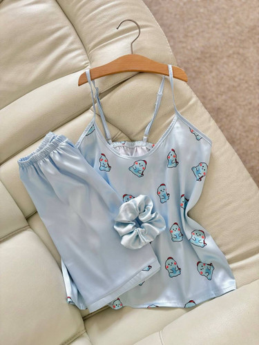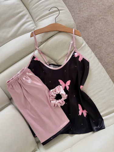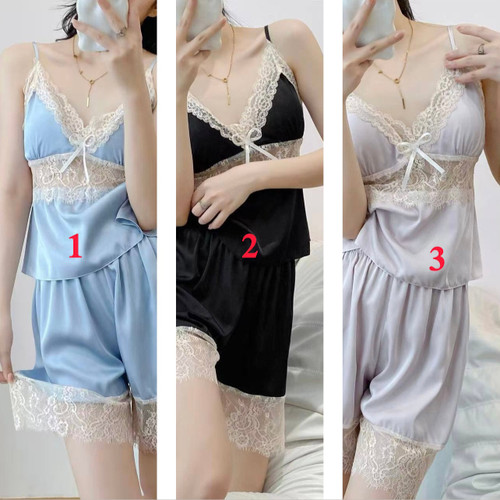 ست تاپ و شورتک ساتن وارداتی در طرح های زیبا و شیک ۲۸۹۵