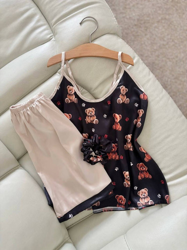 ست تاب شرتک ساتن (طرح بندی دارد)
