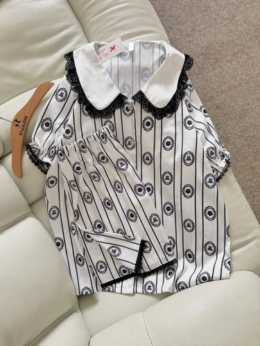 ست بلوز شلوار ساتن آستین کوتاه (طرح بندی دارد)