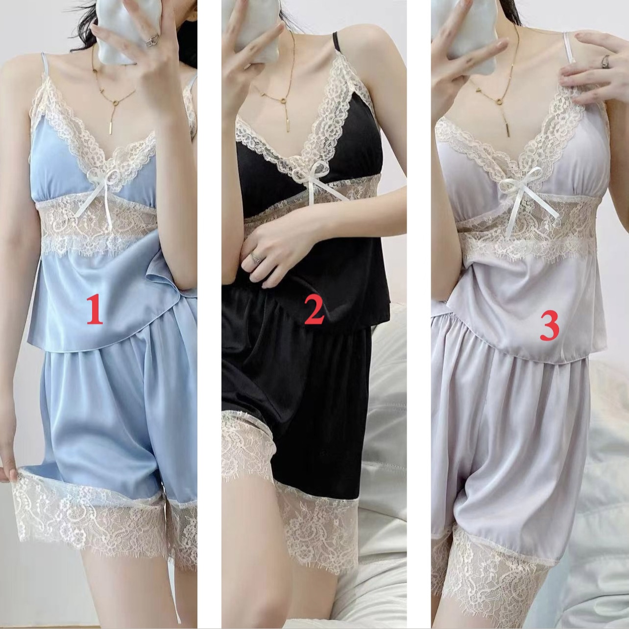 ست تاپ و شورتک ساتن وارداتی در طرح های زیبا و شیک ۲۸۹۵