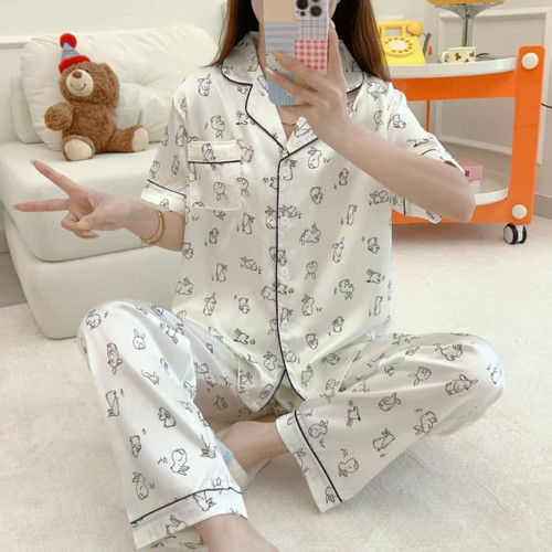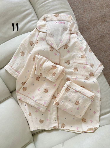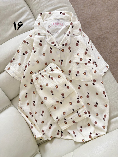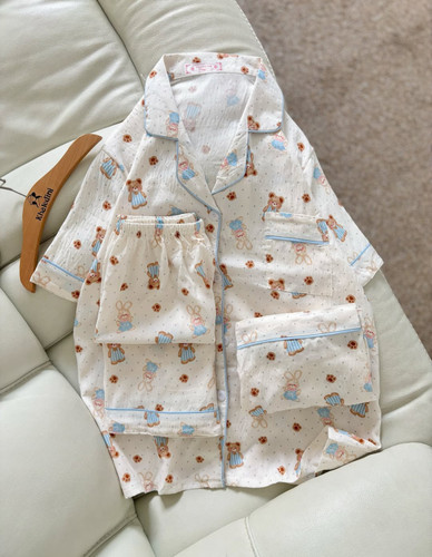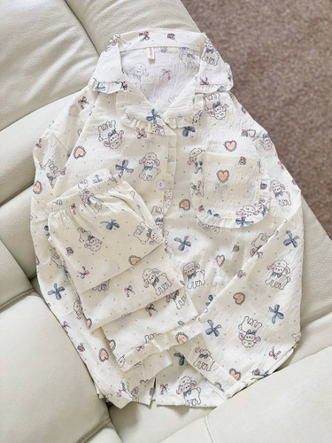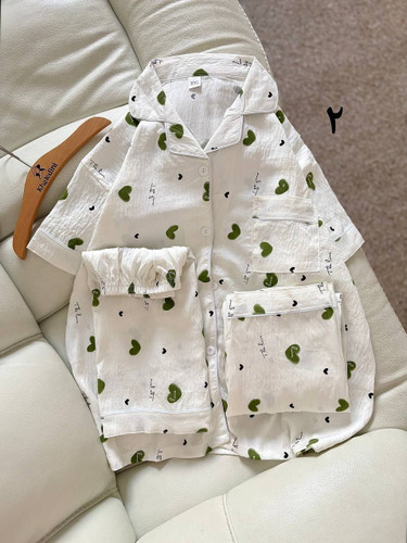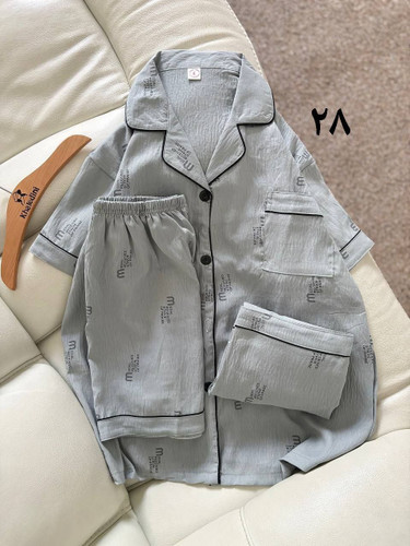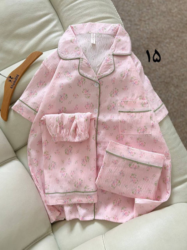 ست لباس راحتی زنانه و دخترانه دو تیکه بلوز آستین بلند دکمه دار و شلوار کریشه