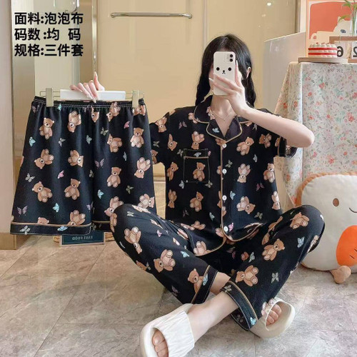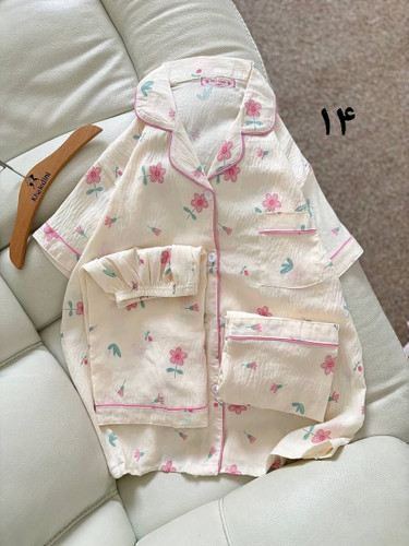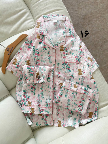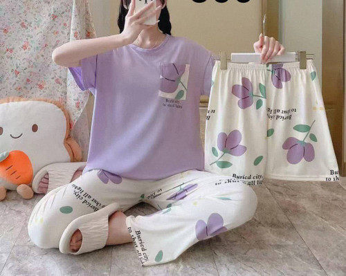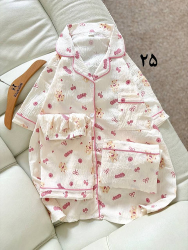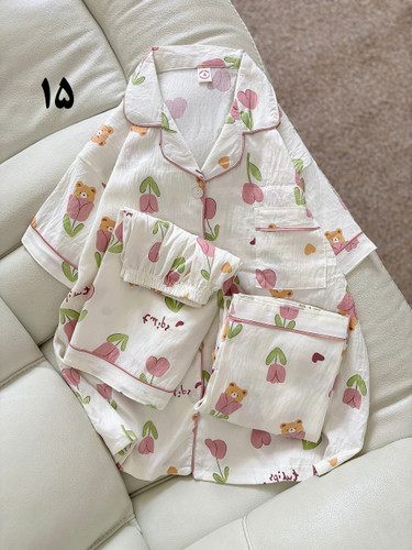 ست سه تیکه بلوز شلوار و شورتک زنانه و دخترانه نخی وارداتی