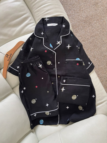 ناموجودست لباس راحتی زنانه و دخترانه دو تیکه بلوز آستین بلند دکمه دار و شلوار کریشه