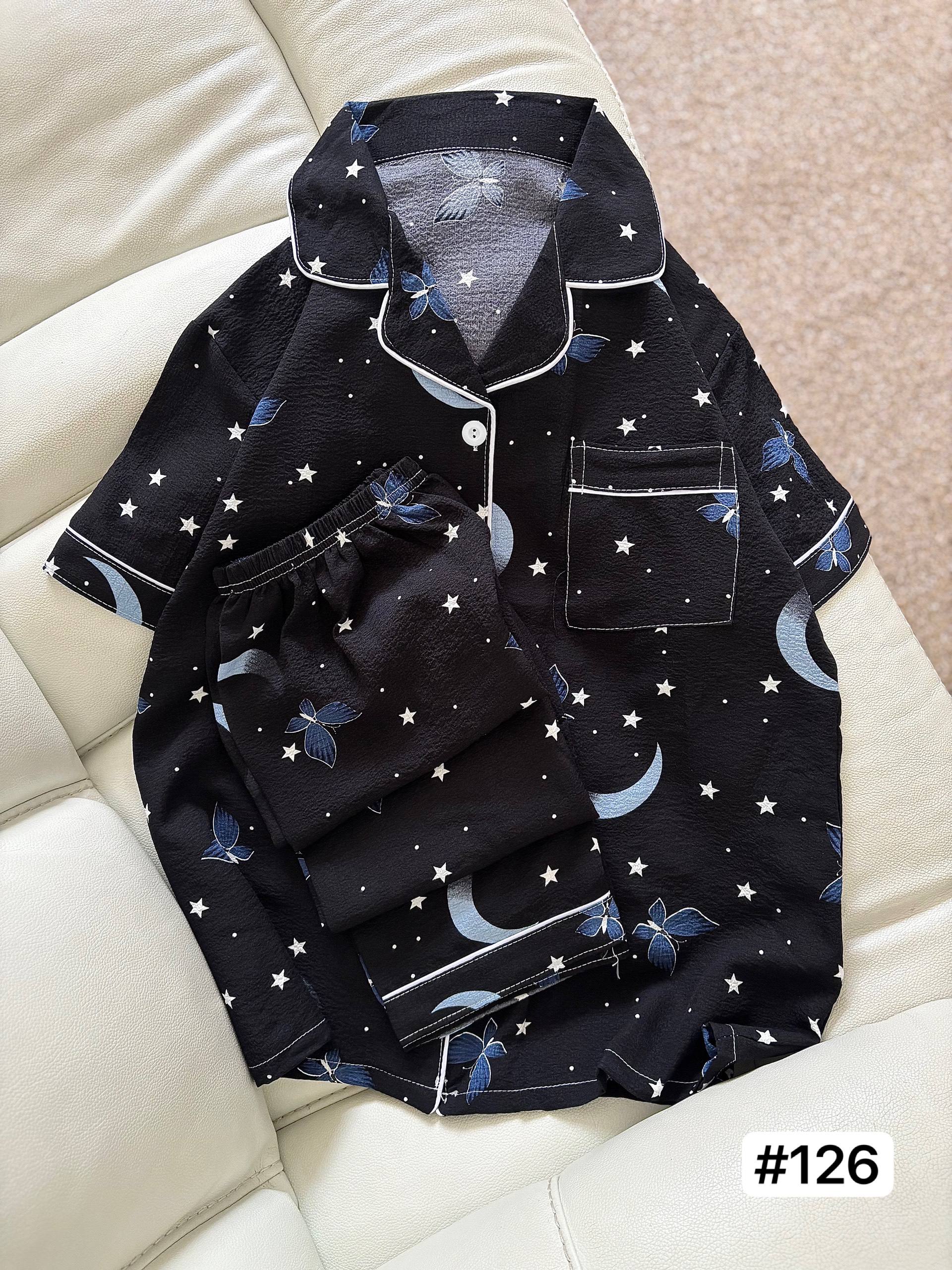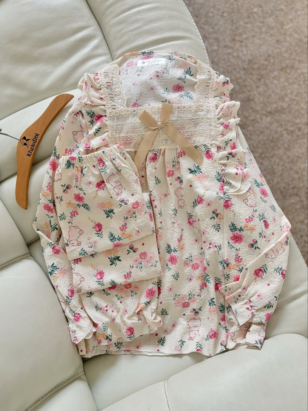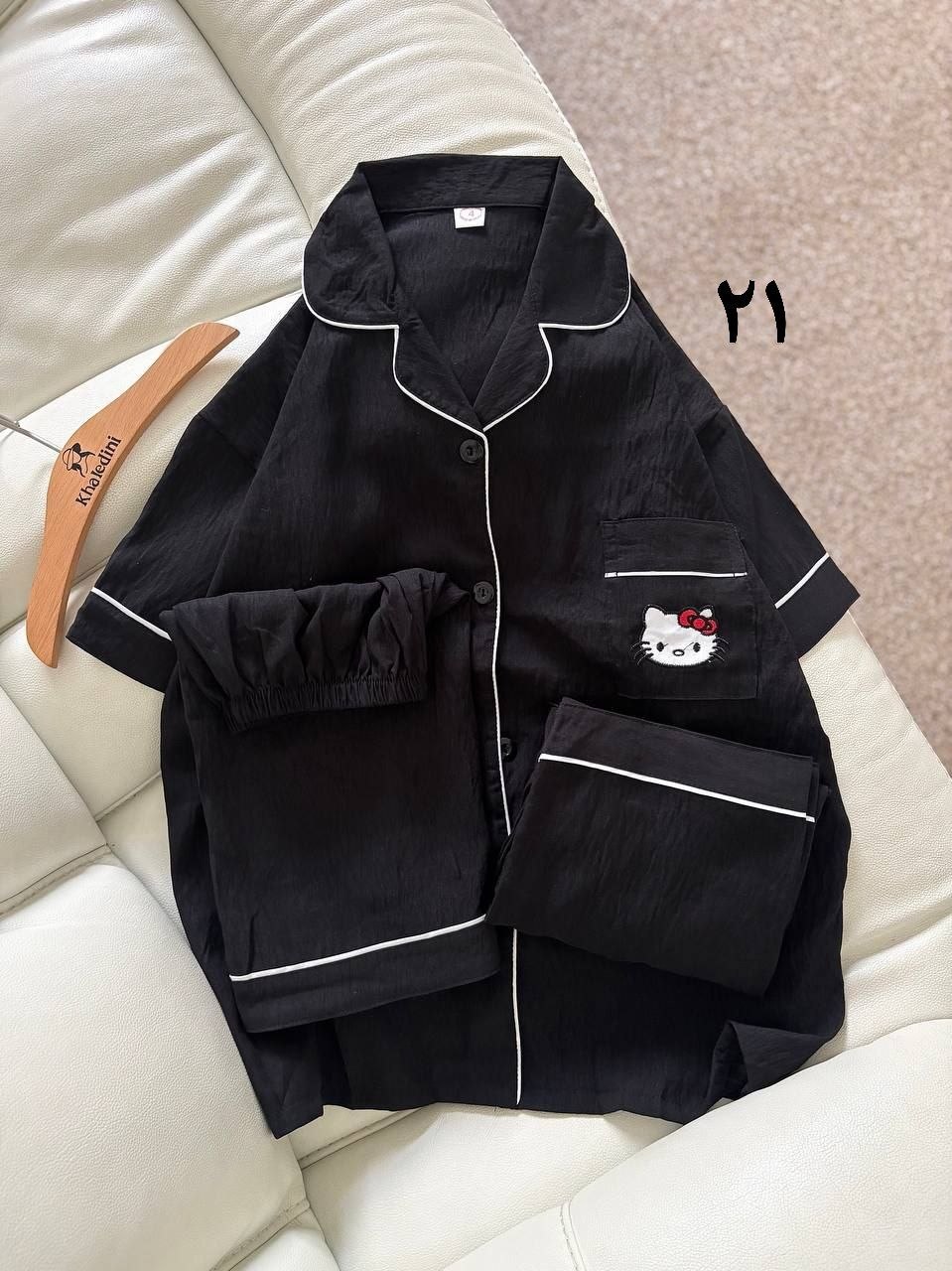 ست لباس راحتی زنانه و دخترانه دو تیکه بلوز آستین بلند دکمه دار و شلوار کریشه