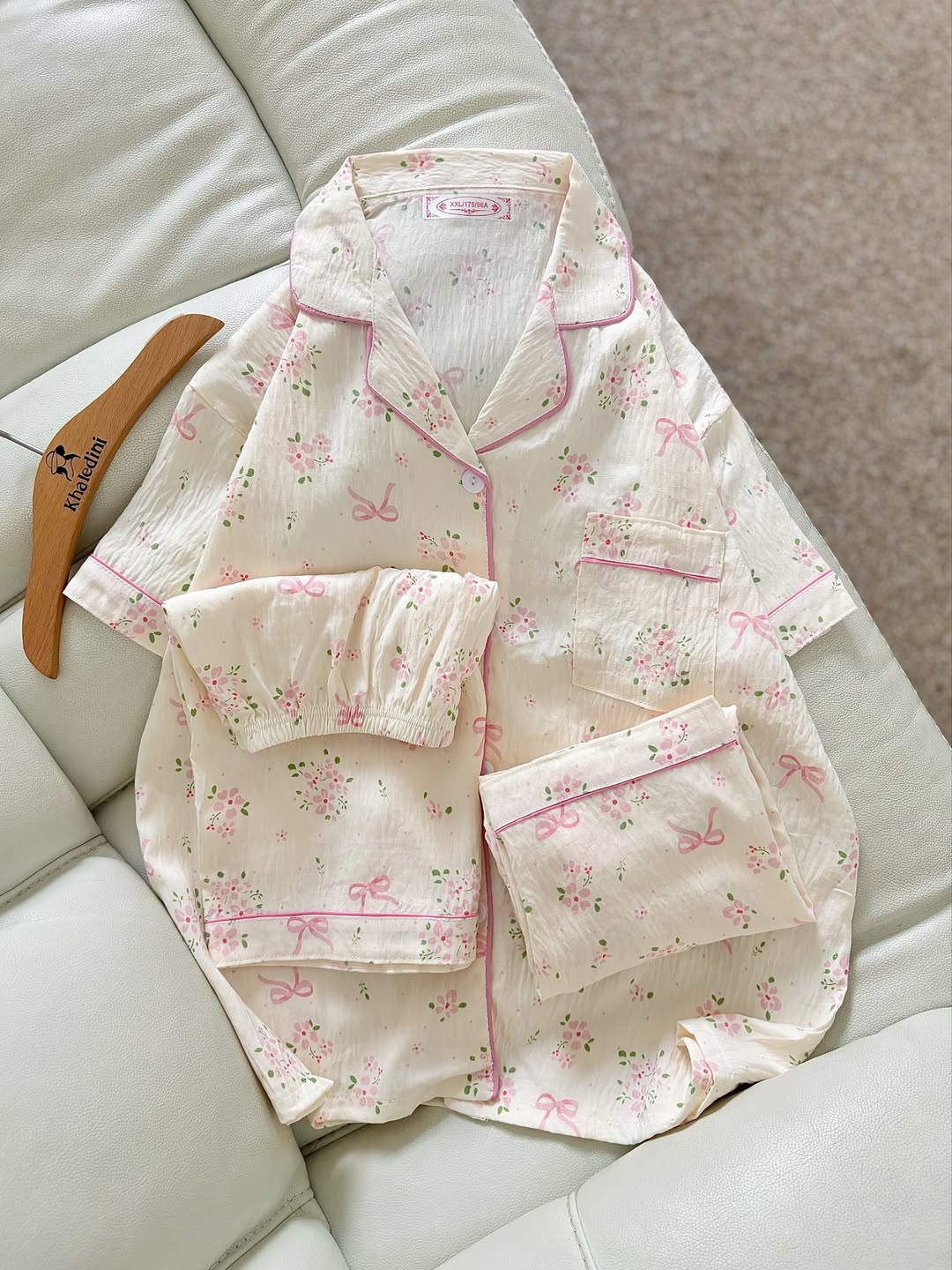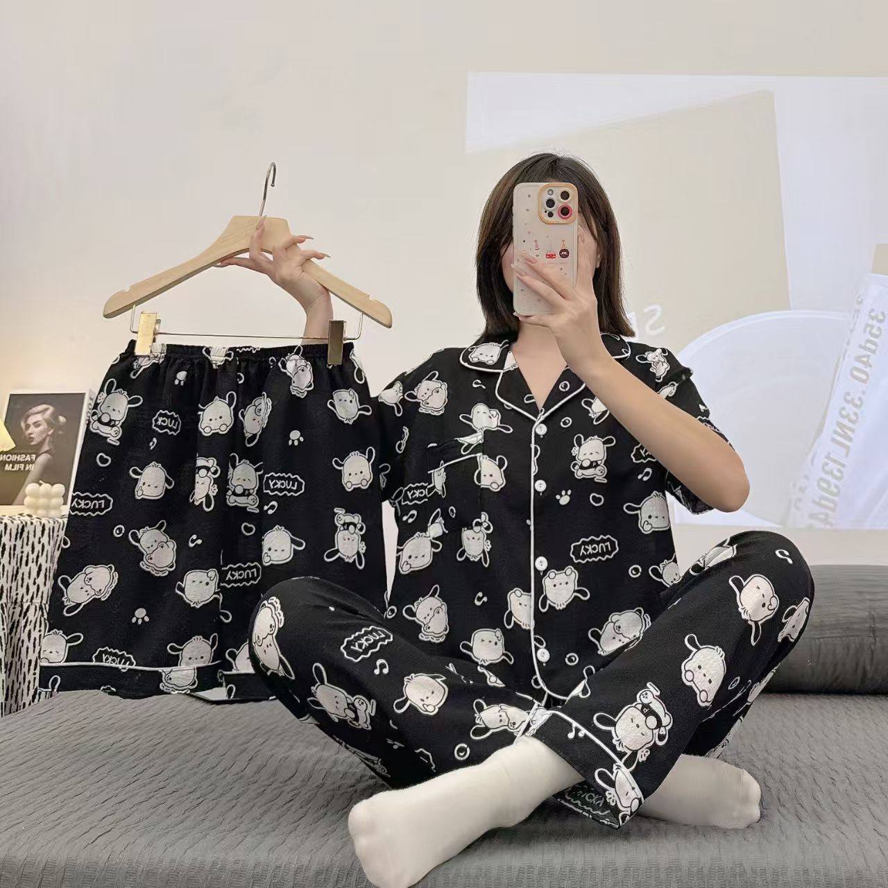 ست سه تیکه بلوز شلوار و شورتک زنانه و دخترانه نخی وارداتی