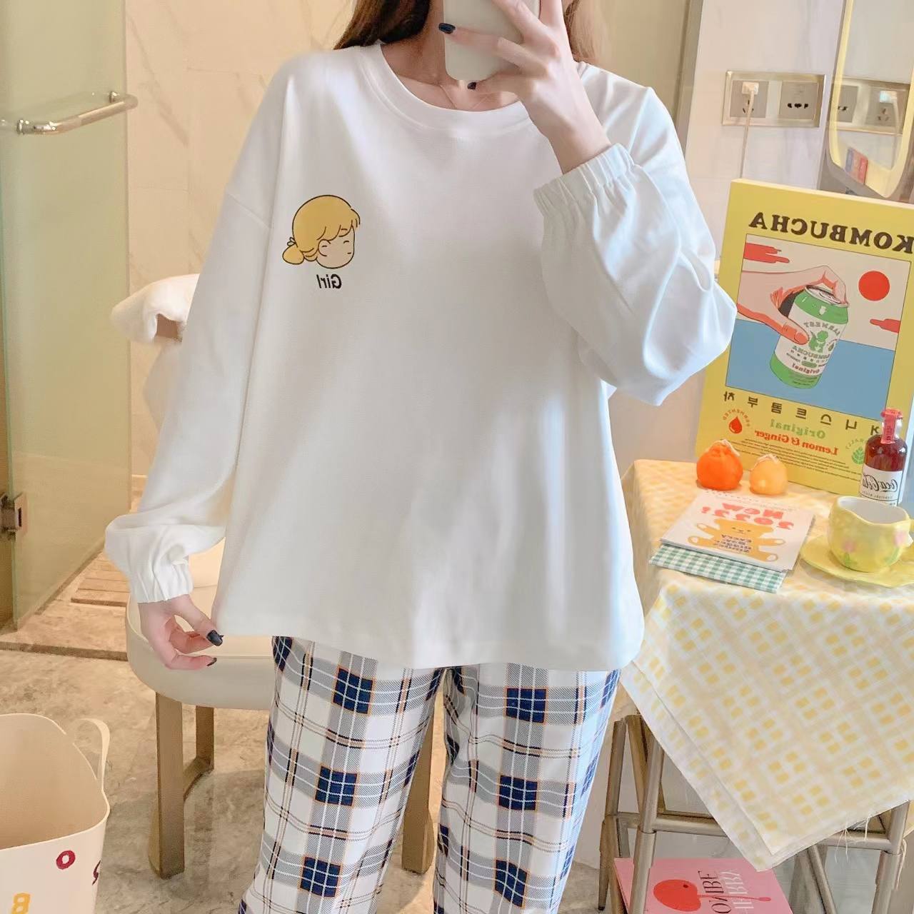 ست لباس راحتی زنانه و دخترانه دو تیکه بلوز آستین بلند و شلوار پنبه ای