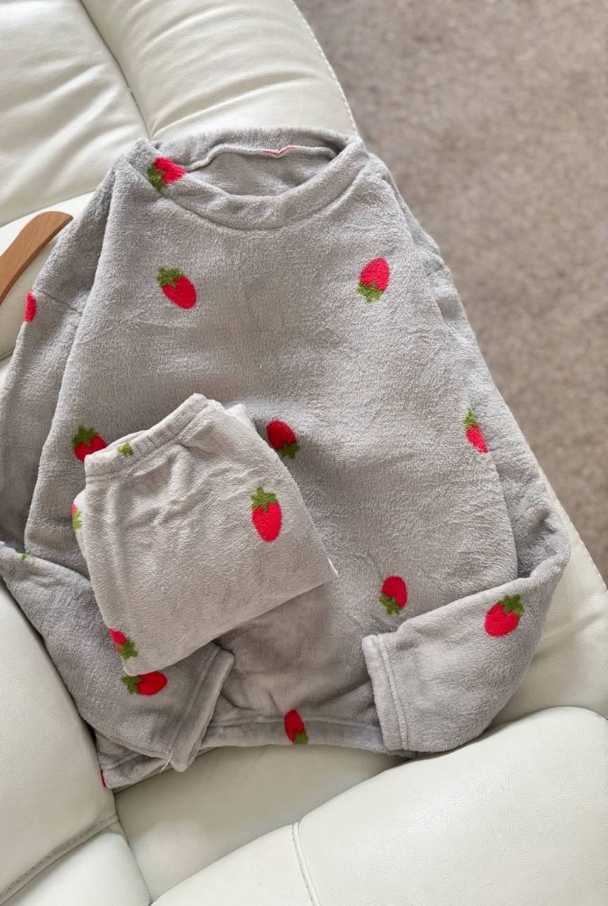 ناموجودست دوتیکه پیراهن و شلوار تدی با طرح توت فرنگی در سه رنگ