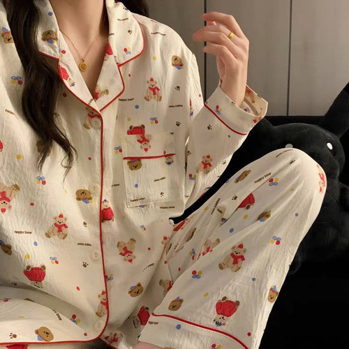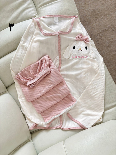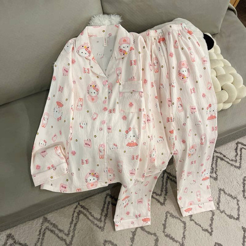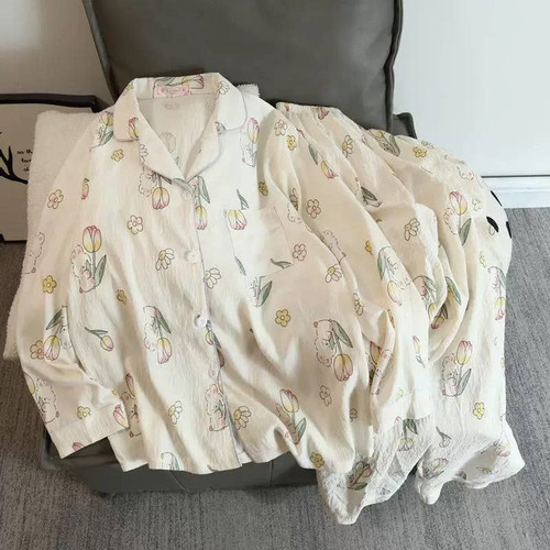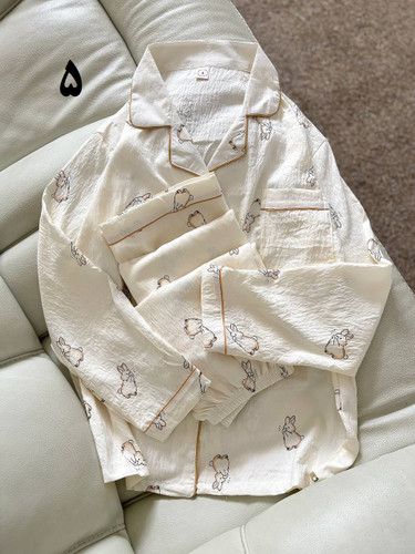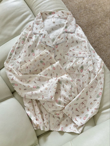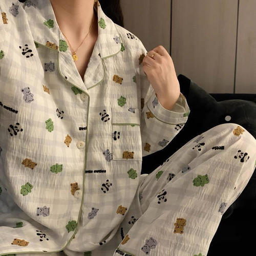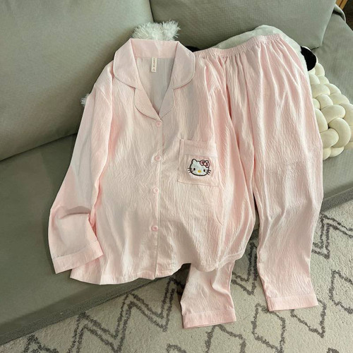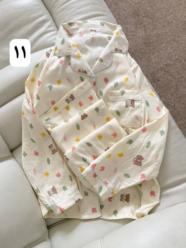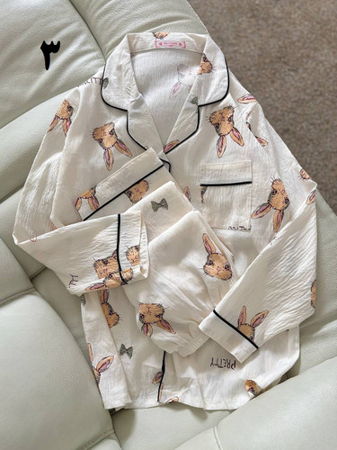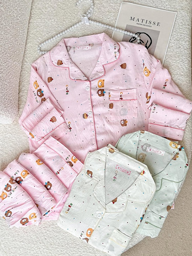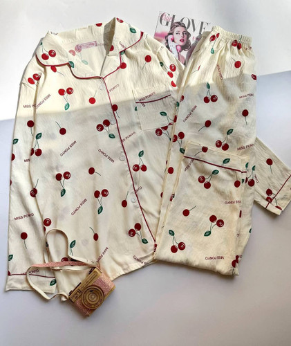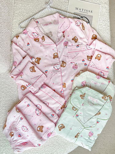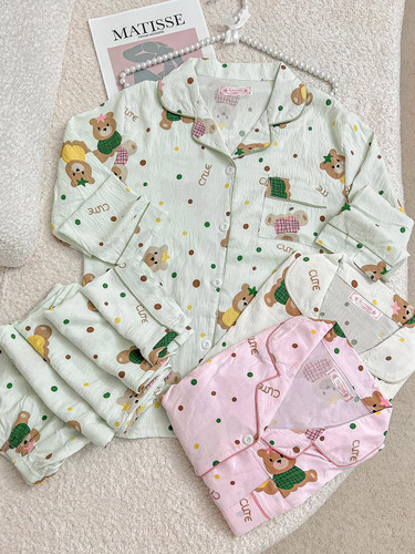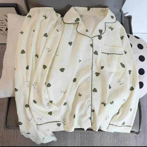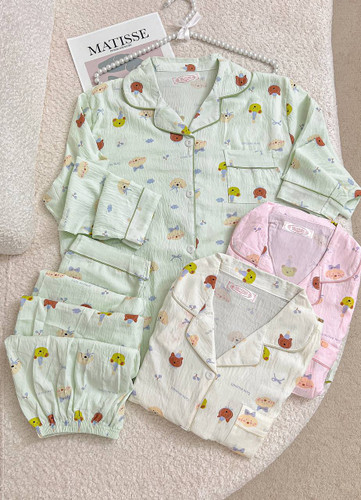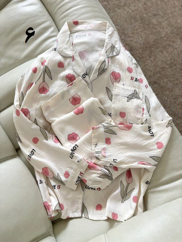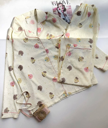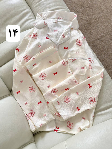 ست لباس راحتی زنانه و دخترانه دو تیکه بلوز آستین بلند دکمه دار و شلوار کریشه
