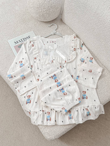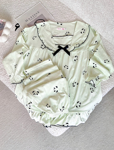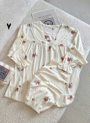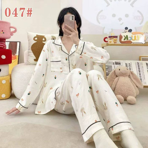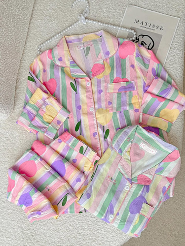 ست لباس راحتی زنانه و دخترانه دو تیکه بلوز آستین بلند و شلوار پنبه ای