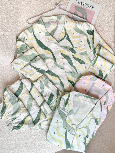 ست دو تیکه نخ موسلین بلوز شلوار وارداتی/ در طرح های متنوع