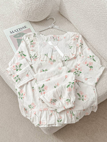ست دو تیکه نخ موسلین بلوز شلوار وارداتی