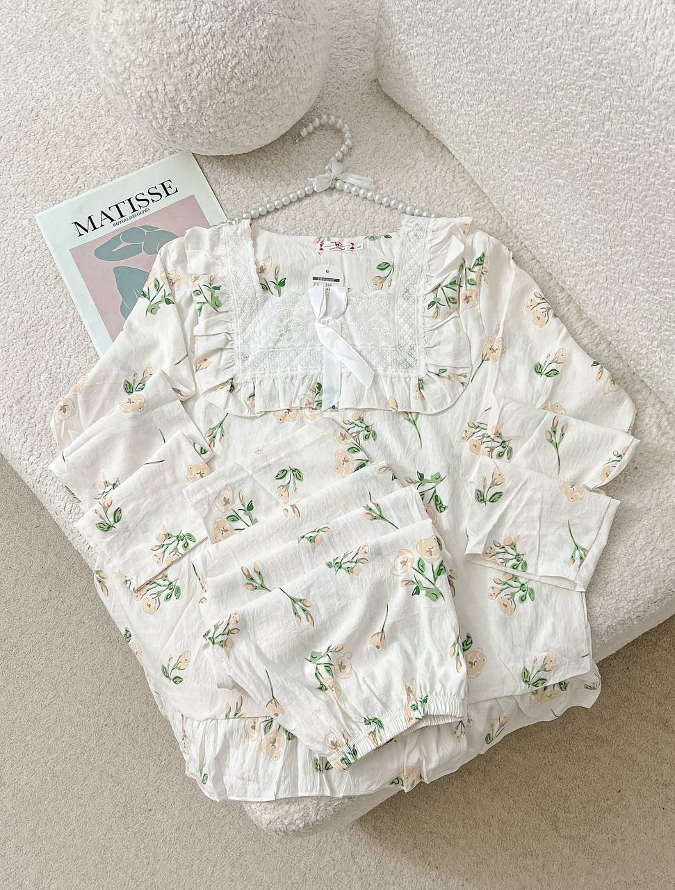 ست دو تیکه نخ موسلین بلوز شلوار وارداتی