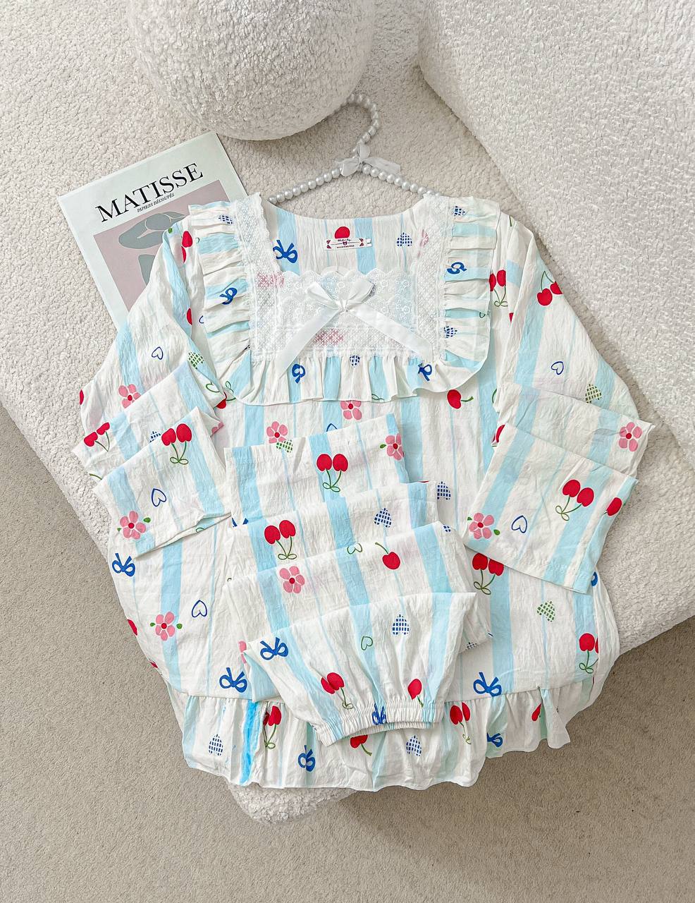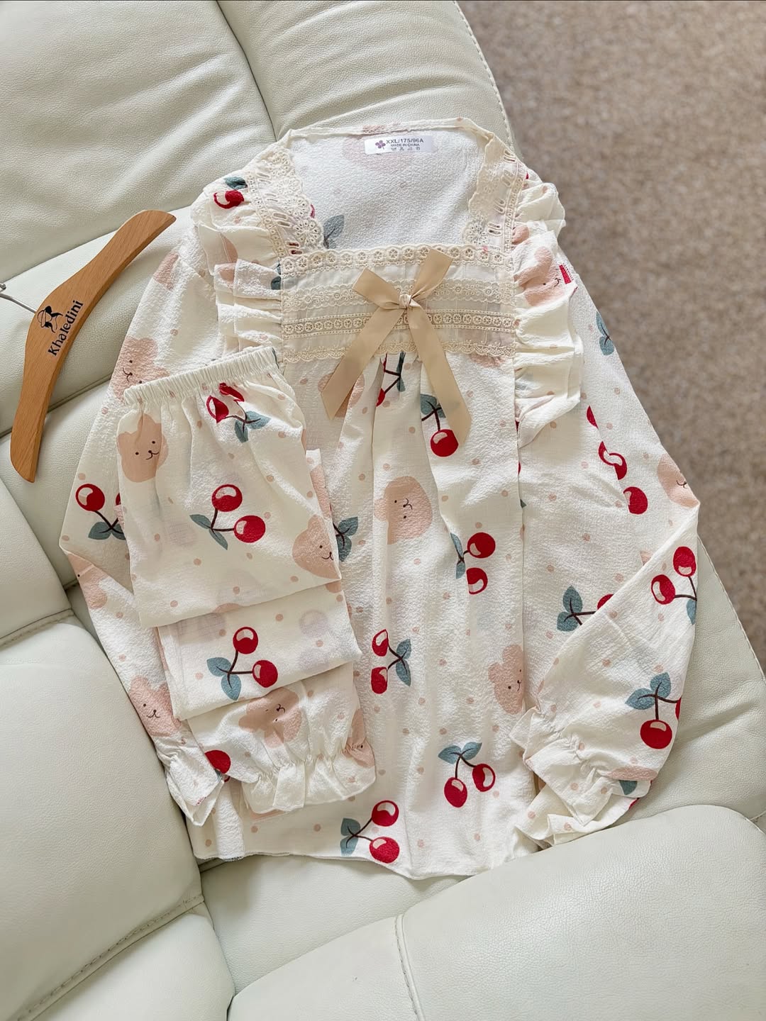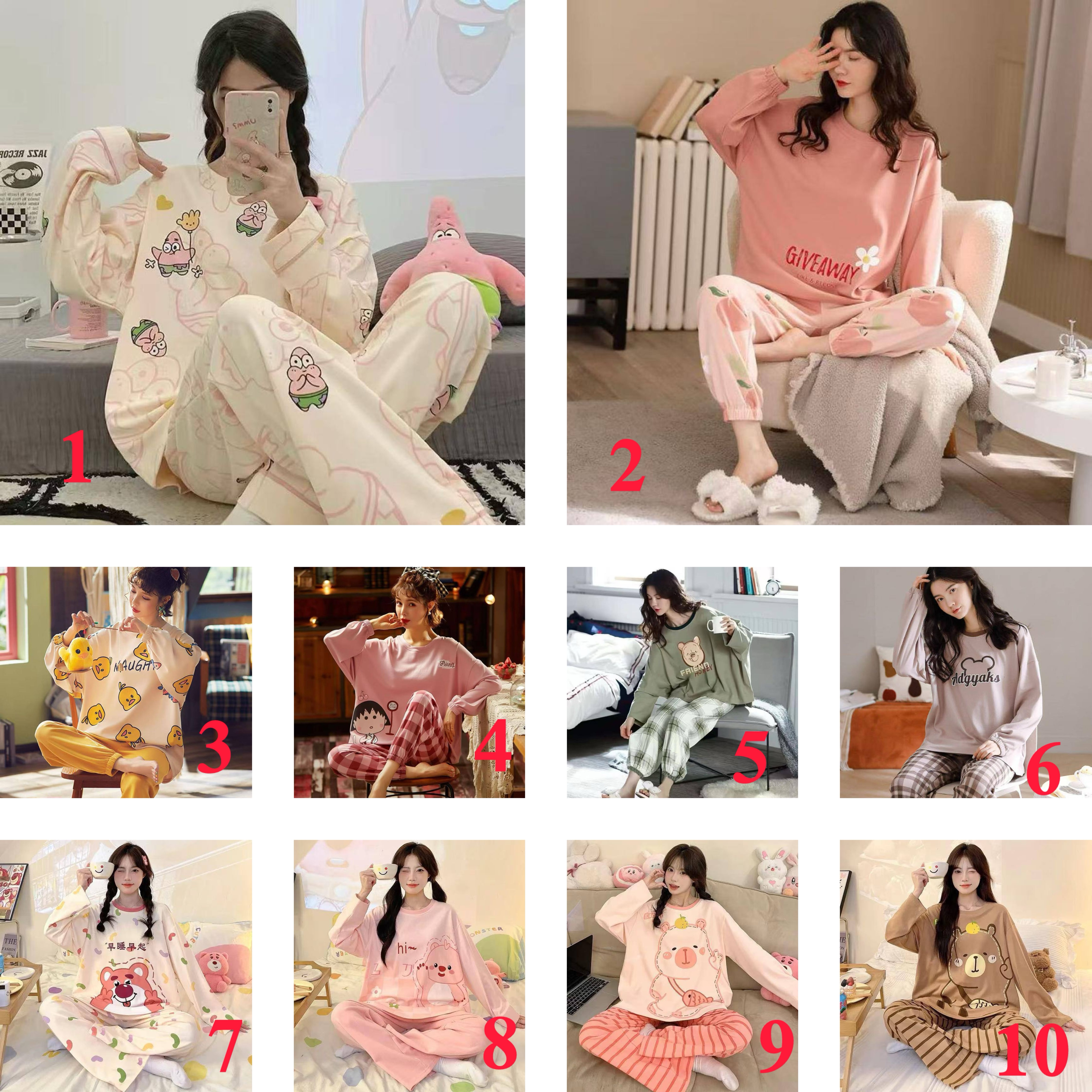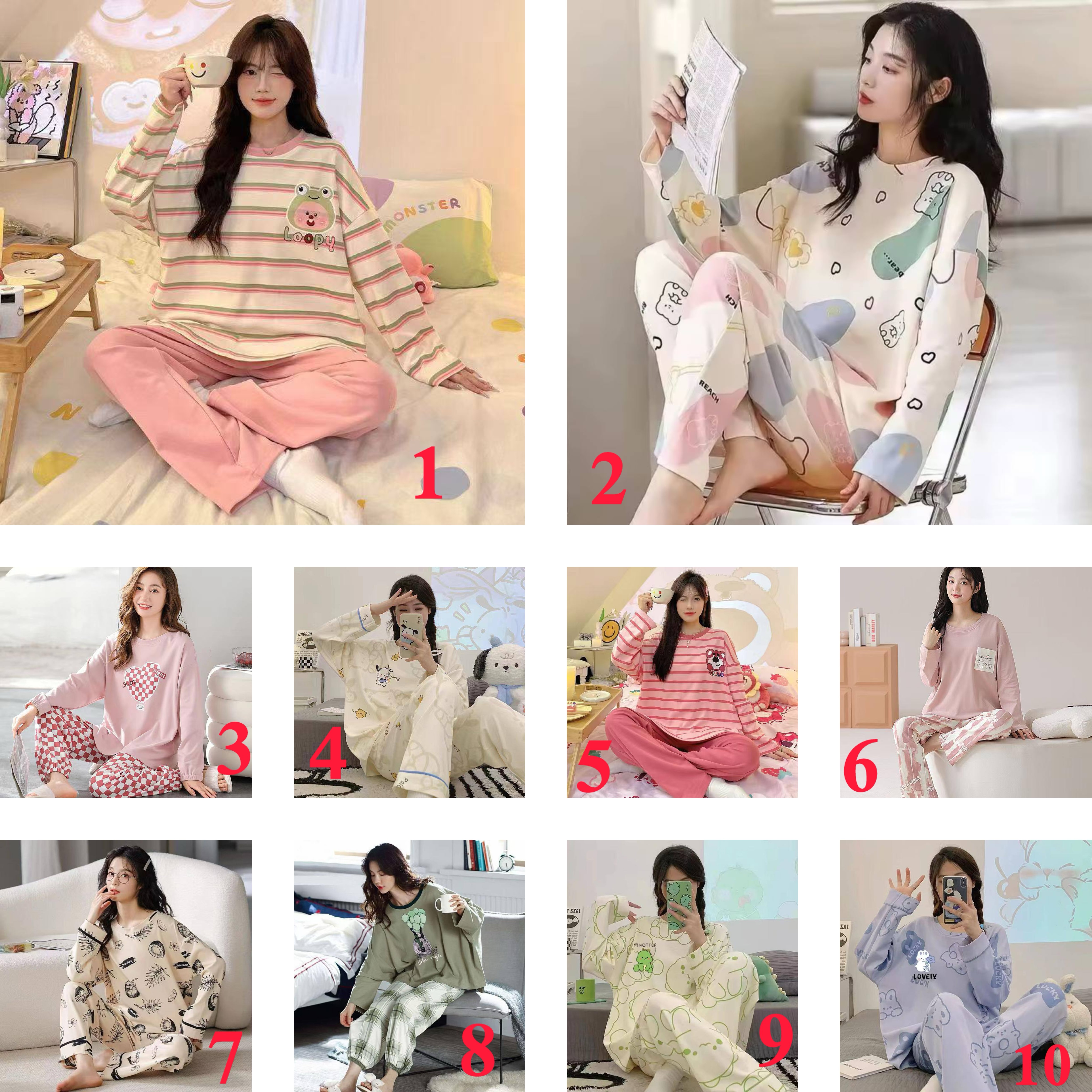 ست لباس راحتی زنانه و دخترانه دو تیکه بلوز آستین بلند و شلوار پنبه ای