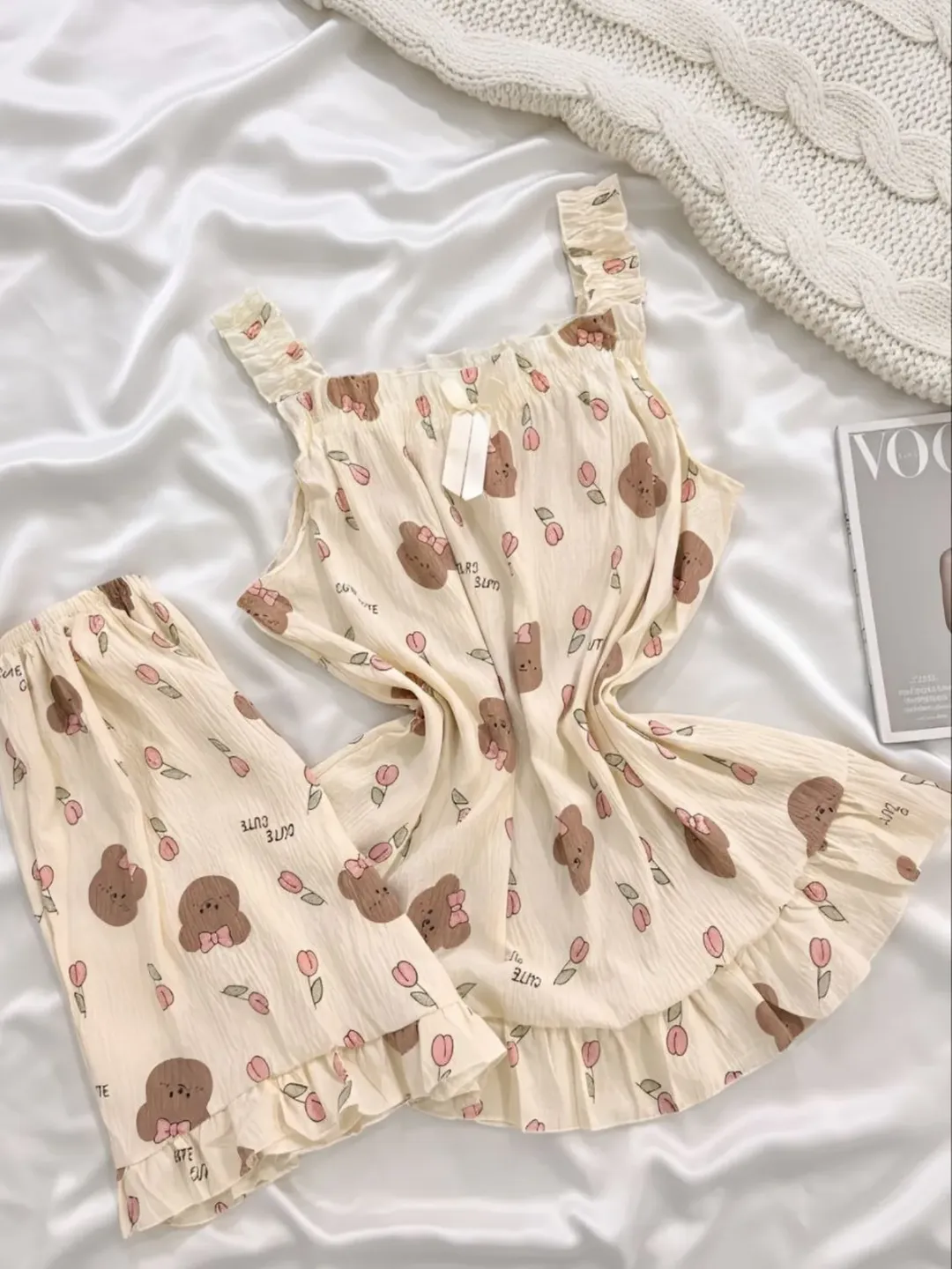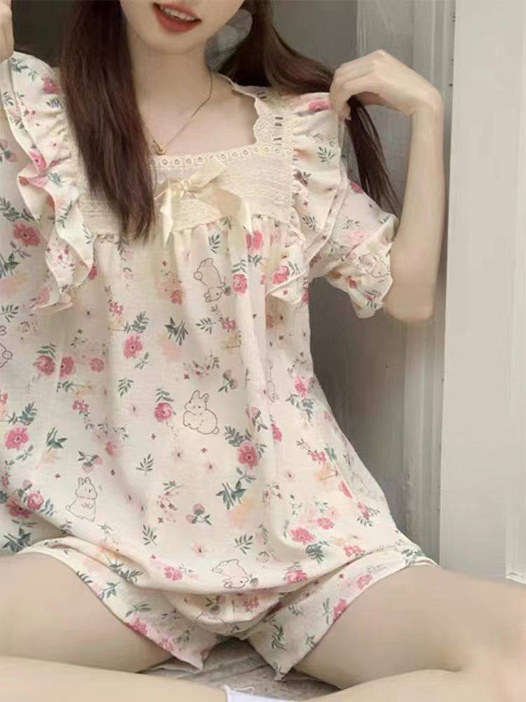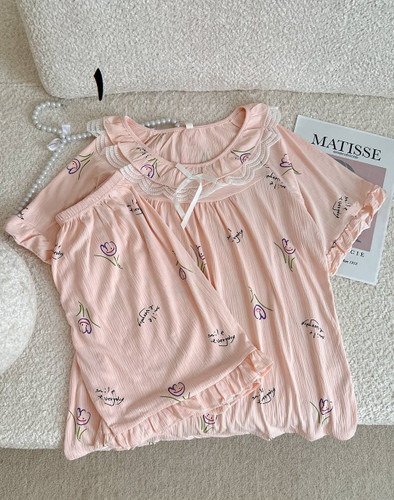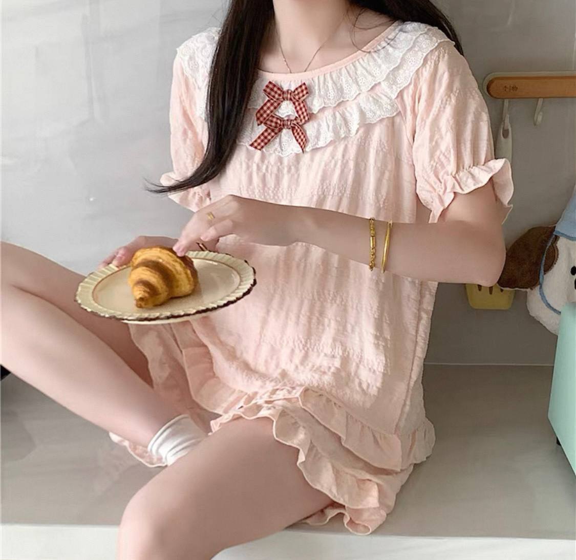 ست دوتیکه بلوز و شورتک نخی وارداتی در طرح های متنوع ۲۹۰۱