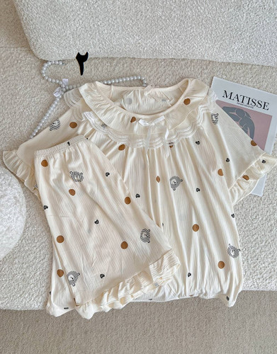 ست بلوز و شورتک یقه گیپوری در طرح های متنوع ۲۹۰۴