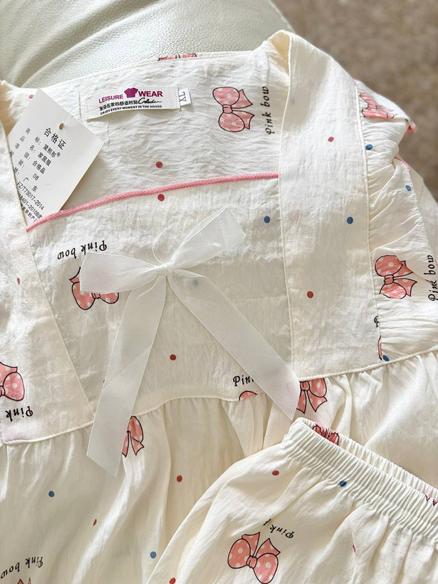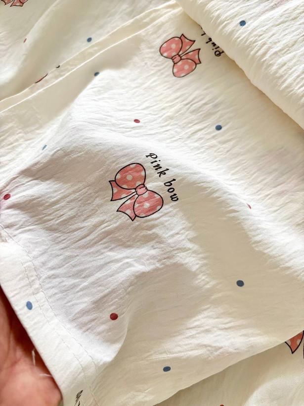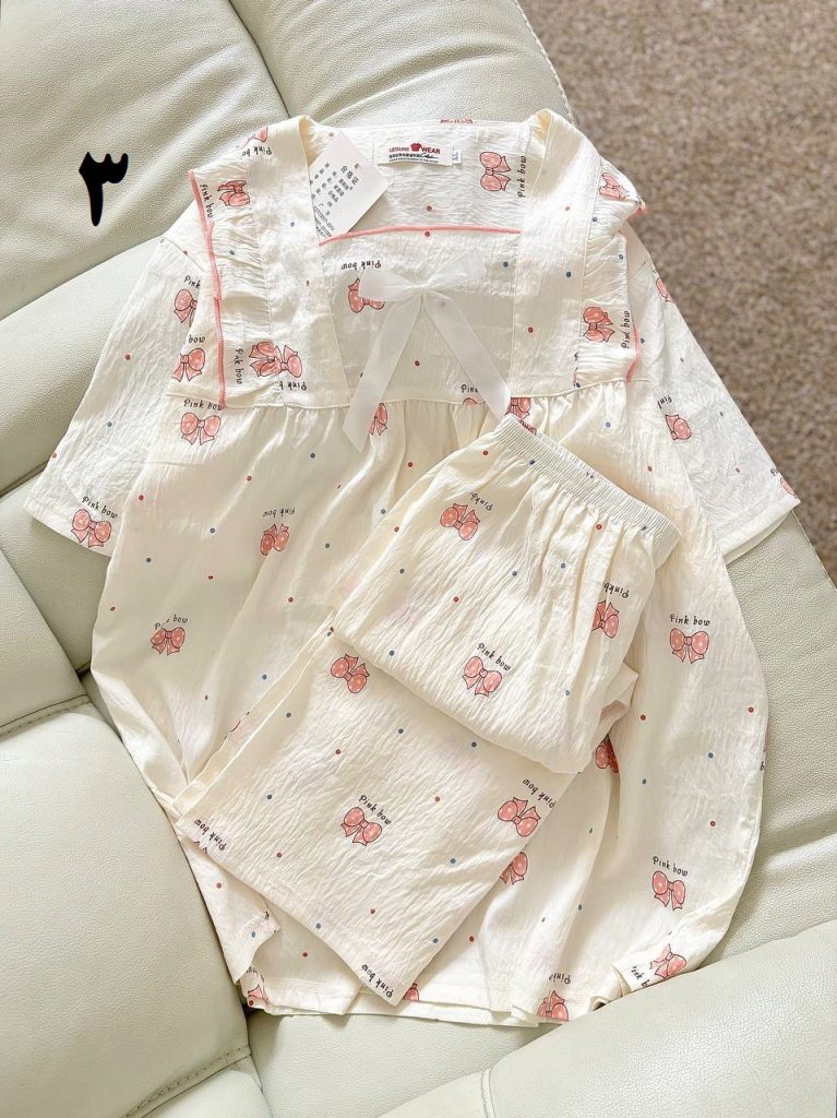 ویژگی: دوتیکه پاپیون دار جنس موسلین وارداتی فری سایز دور سینه 108 قد بلور 65 دور ران 60 قد شلوارک 55
