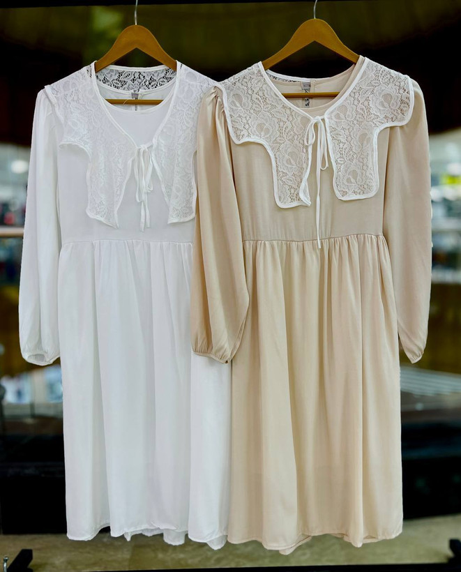 ویژگی: پيراهن بلند دور يقه گيپوري گيپور جدا ميشه جنس:حرير نخ كد: ١١٢٣ ٢رنگ فري سايز مناسب:٣٨/٤٠/٤٢/٤٤ قد:١٠٢سانت