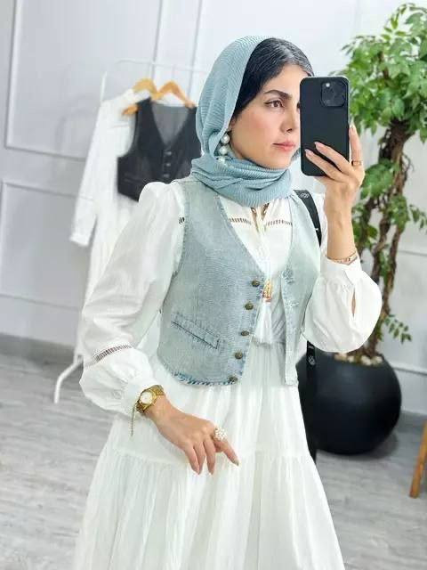 ست دو تیکه پیراهن و جلیقه وارداتی