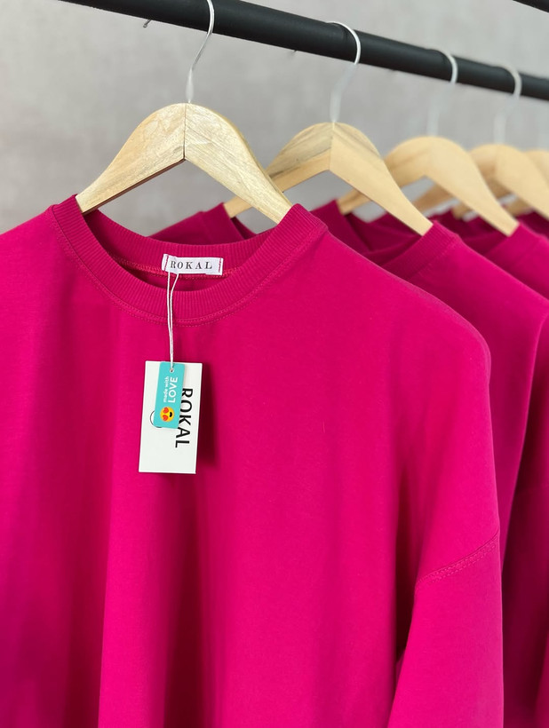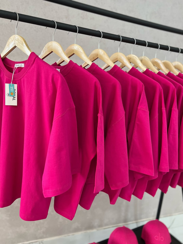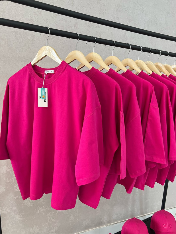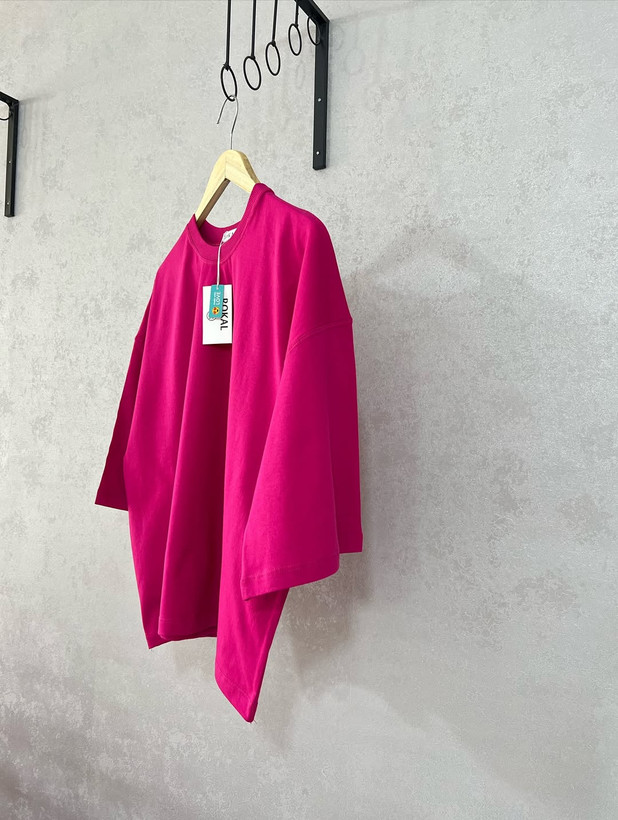 خرید تیشرت باکسی سرخآبی با استایل آزاد و فری سایز، مناسب خانمها و آقایان. دوخت حرفهای، کیفیت بالا و ۱۰۰٪ پنبهای