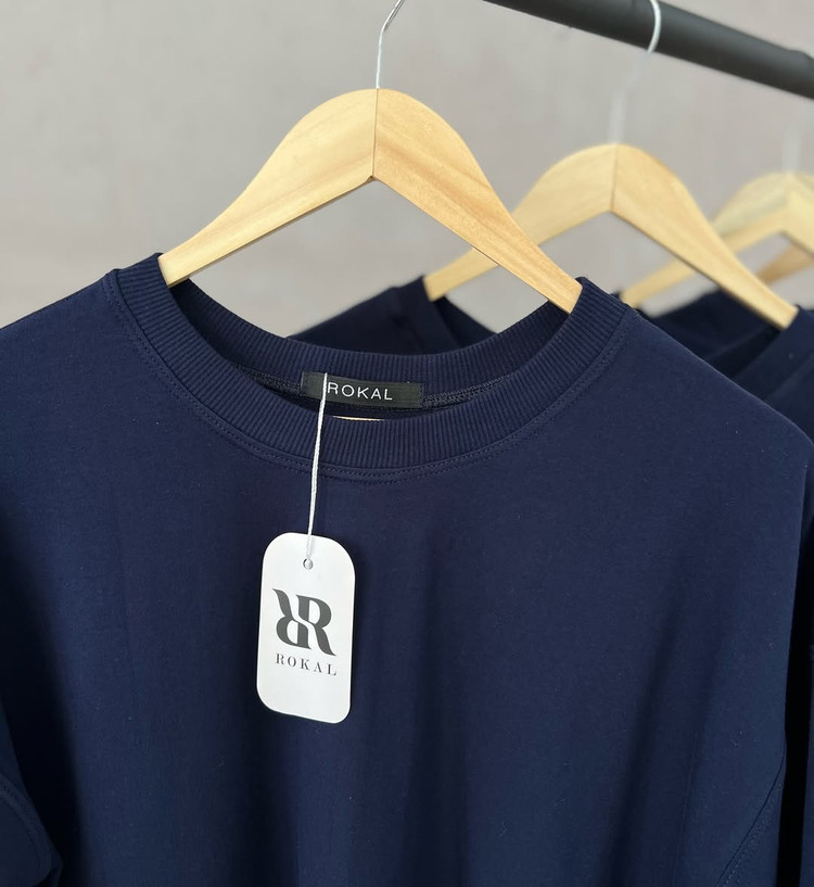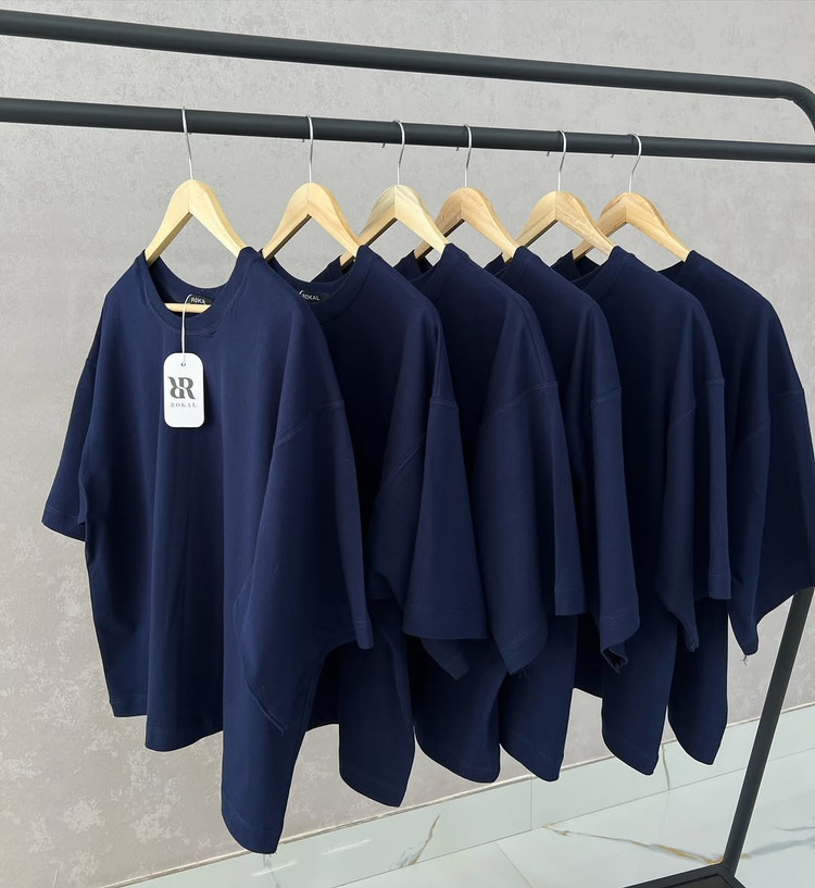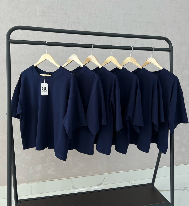 خرید تیشرت باکسی سرمه ای با استایل آزاد و فری سایز، مناسب خانمها و آقایان. دوخت حرفهای، کیفیت بالا و ۱۰۰٪ پنبهای