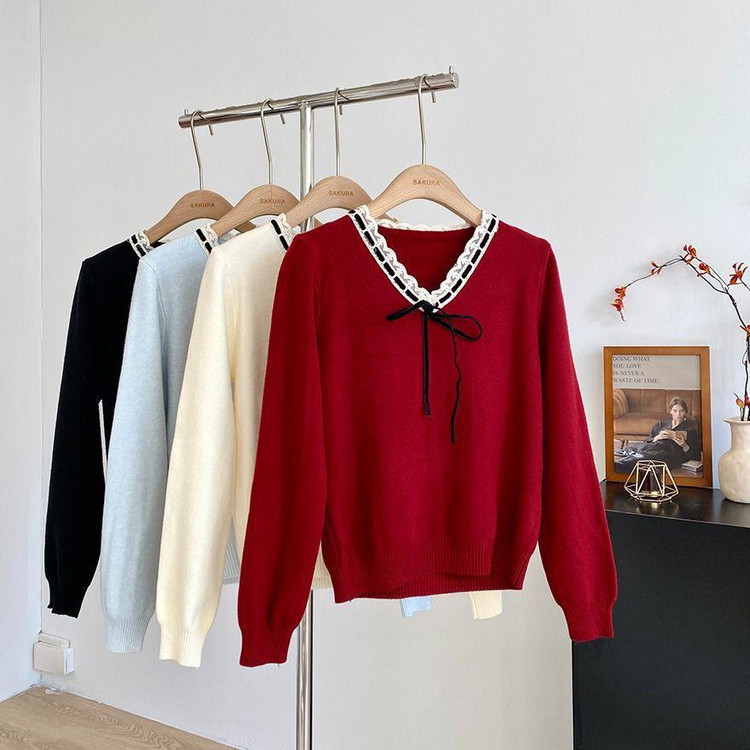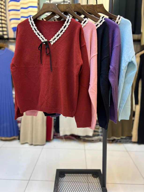 بلوز بافت پاپییون دار گرم بالا/ رنگبندی دارد (۲)