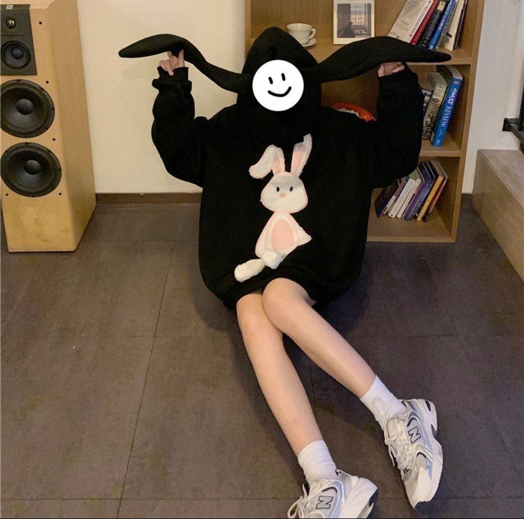 هودی خرگوشی گوش دار داخل کرک در دو رنگ سفید و مشکی (۲)
