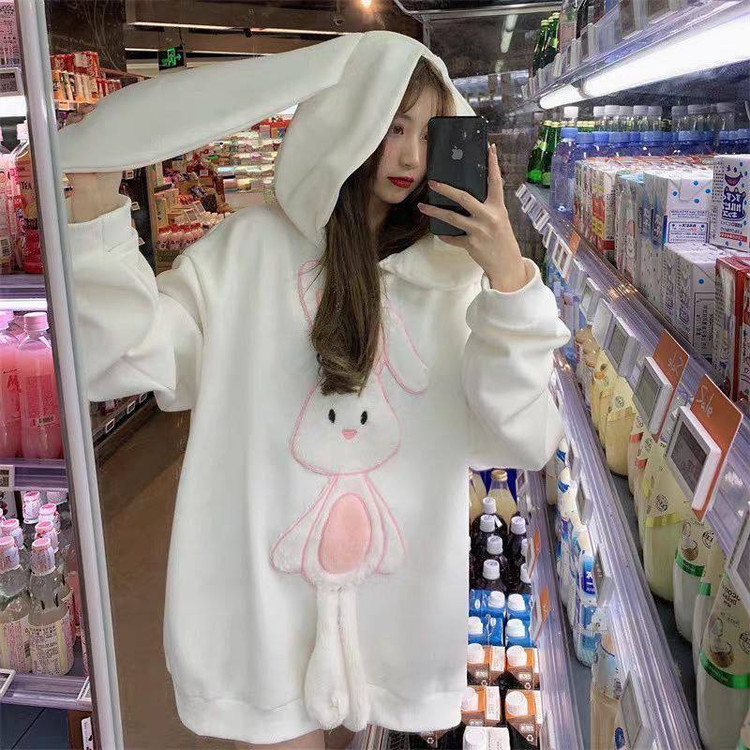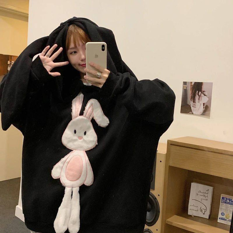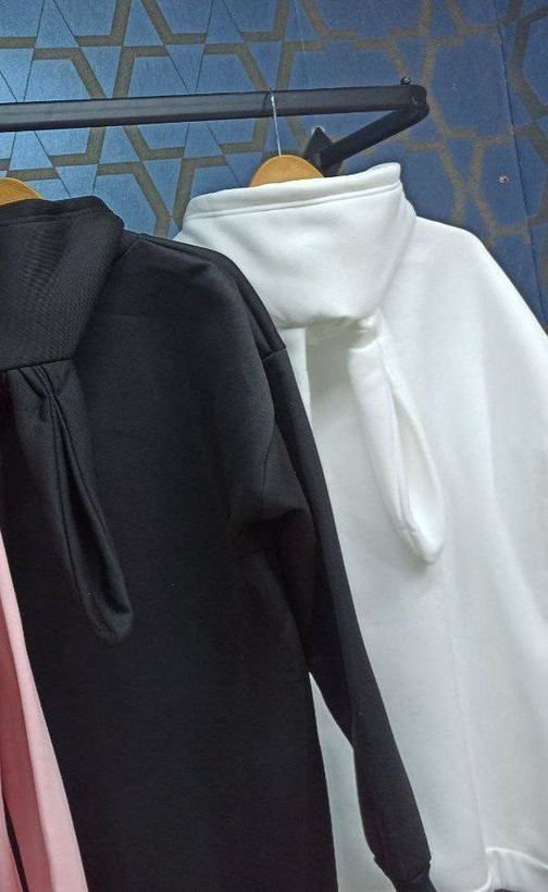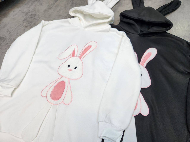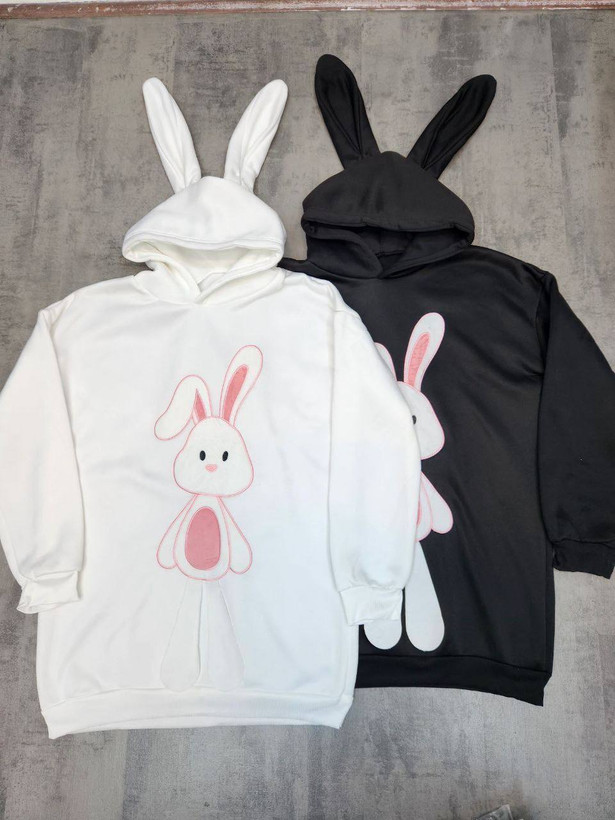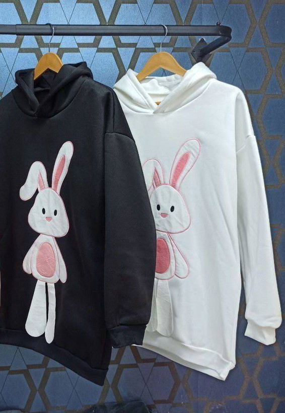 هودی خرگوشی گوش دار داخل کرک در دو رنگ سفید و مشکی (۲)