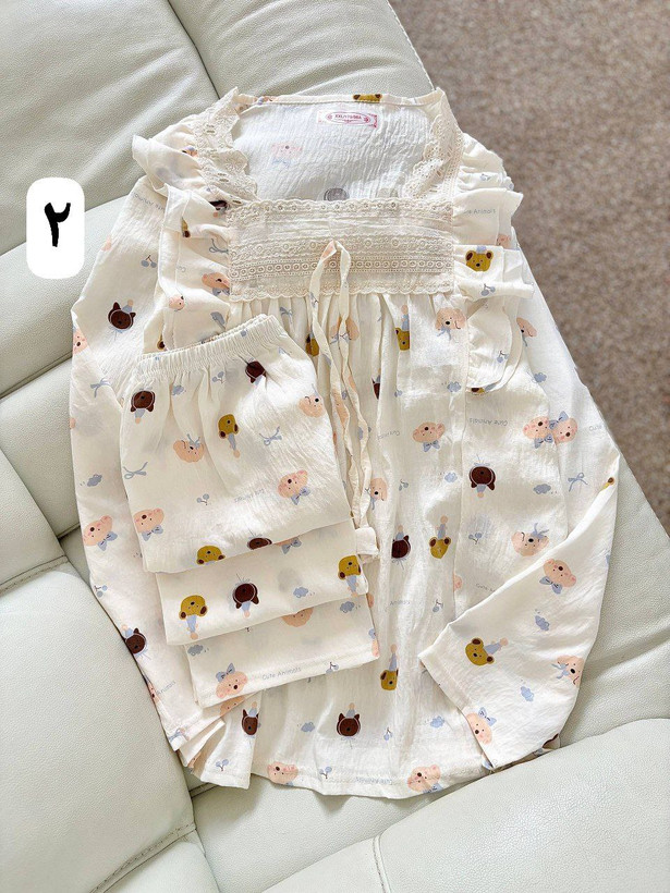 - : ست دو تیکه بلوز آستین بلند و شلوار جنس نخ موسلین فری سایز مناسب ۳۶ تا ۴۶