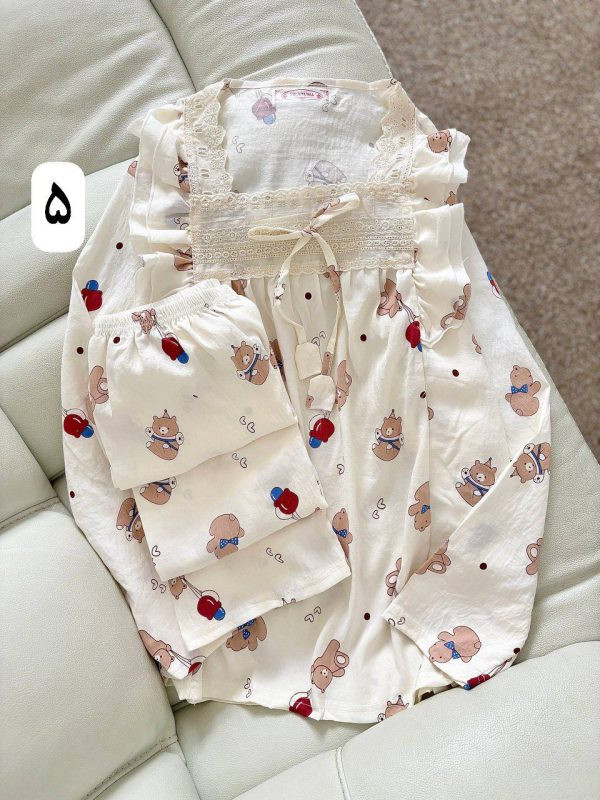 - : ست دو تیکه بلوز آستین بلند و شلوار جنس نخ موسلین فری سایز مناسب ۳۶ تا ۴۶