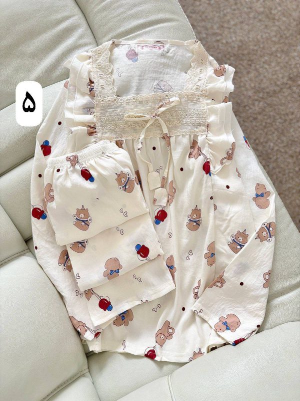 - : ست دو تیکه بلوز آستین بلند و شلوار جنس نخ موسلین فری سایز مناسب ۳۶ تا ۴۶